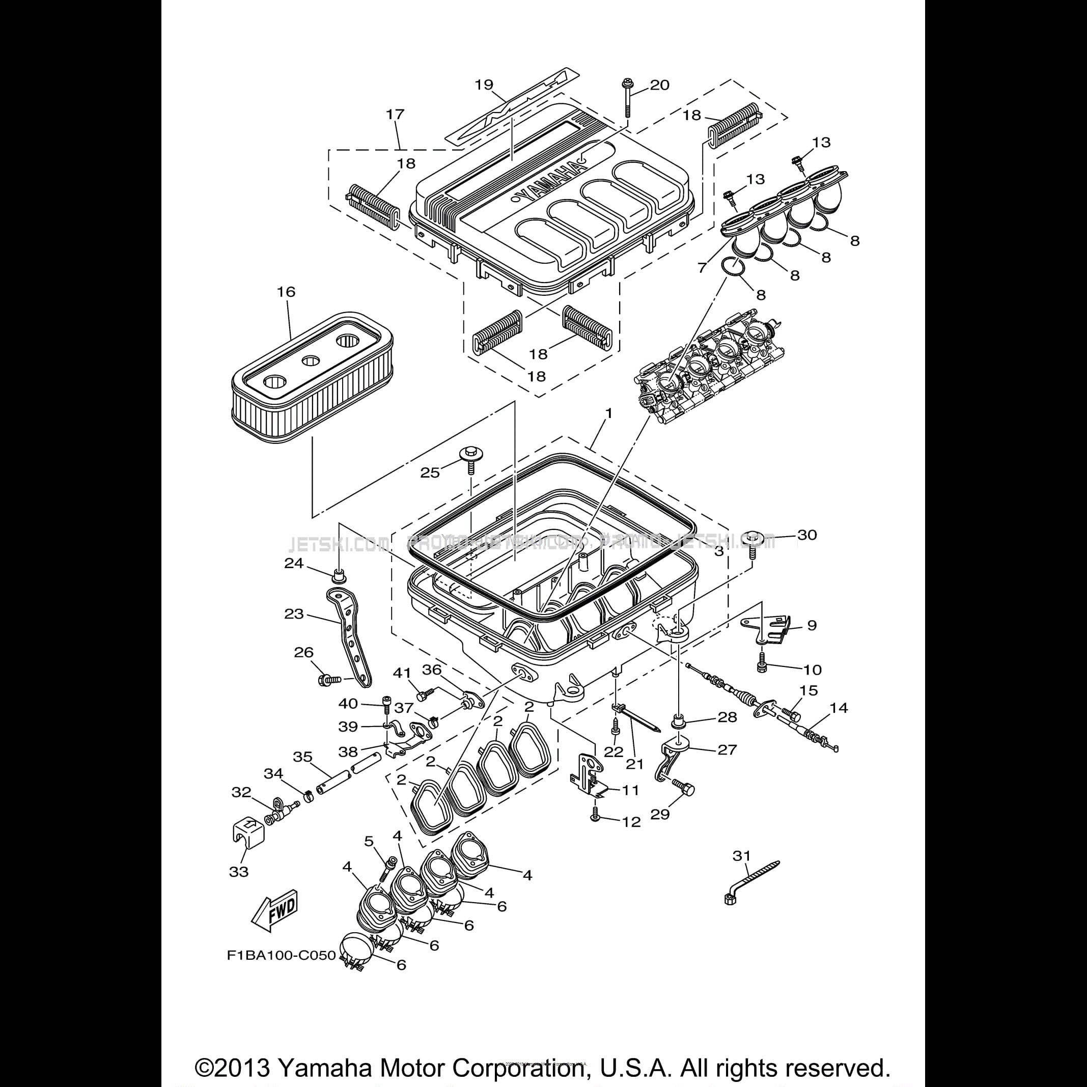 Below, find all references of original and spare parts for INTAKE for your Yamaha FX Cruiser (Cali.) - FX1000ACC - 2004 2004 WaveRunner and available at Promo-jetski.com.