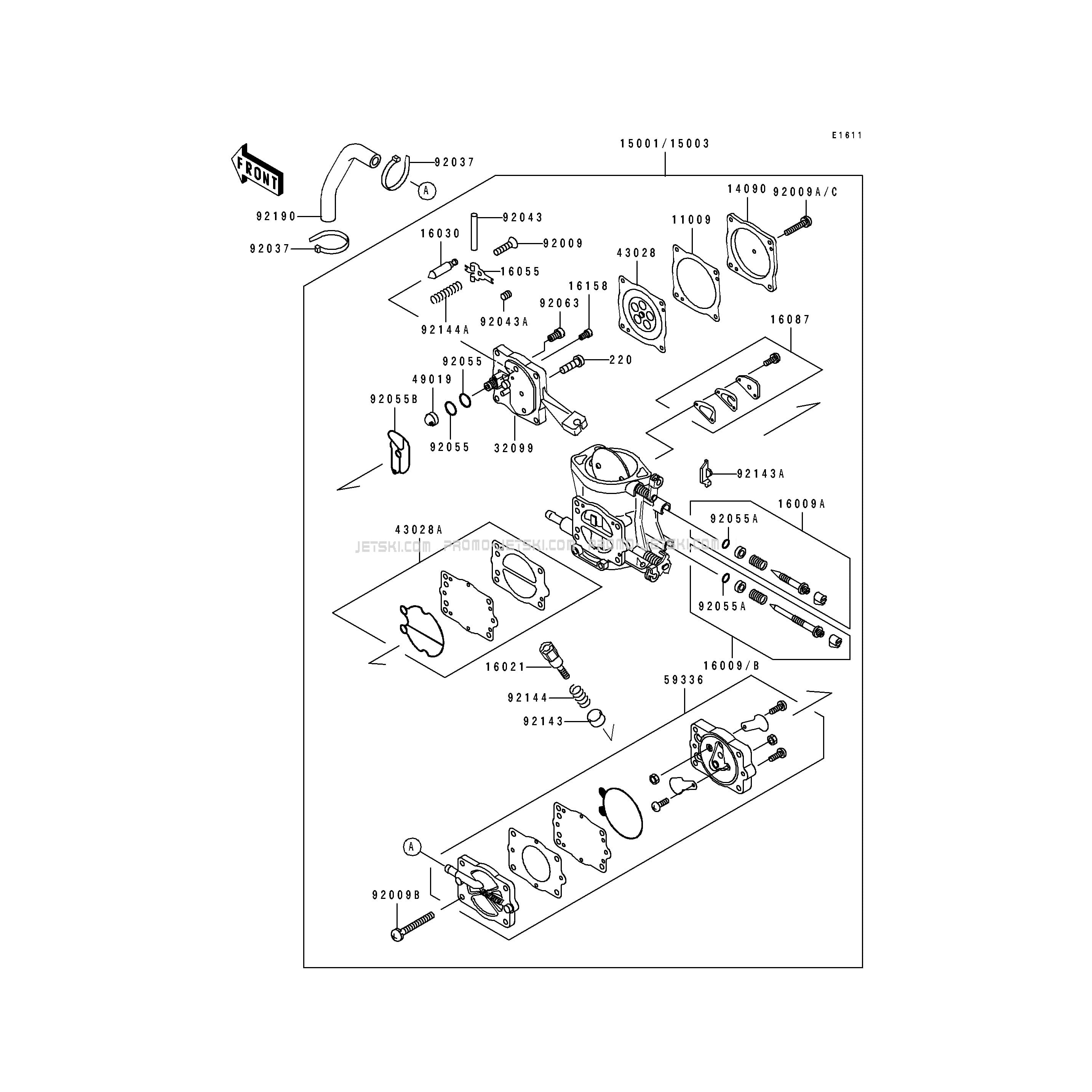 Below, find all references of original and spare parts for Carburetor for your Kawasaki TS 1995 and available at Promo-jetski.com.