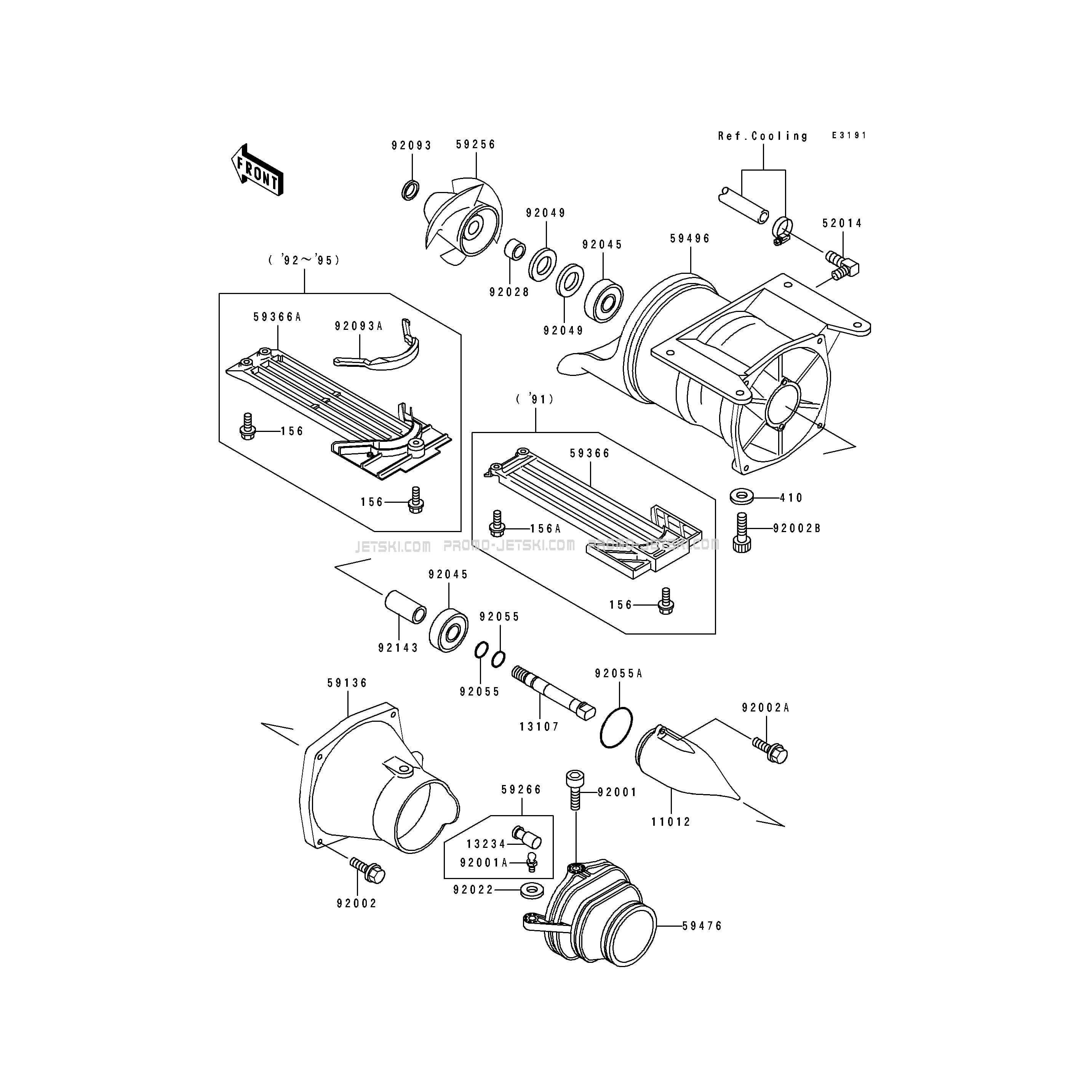 Below, find all references of original and spare parts for Jet Pump for your Kawasaki TS 1995 and available at Promo-jetski.com.
