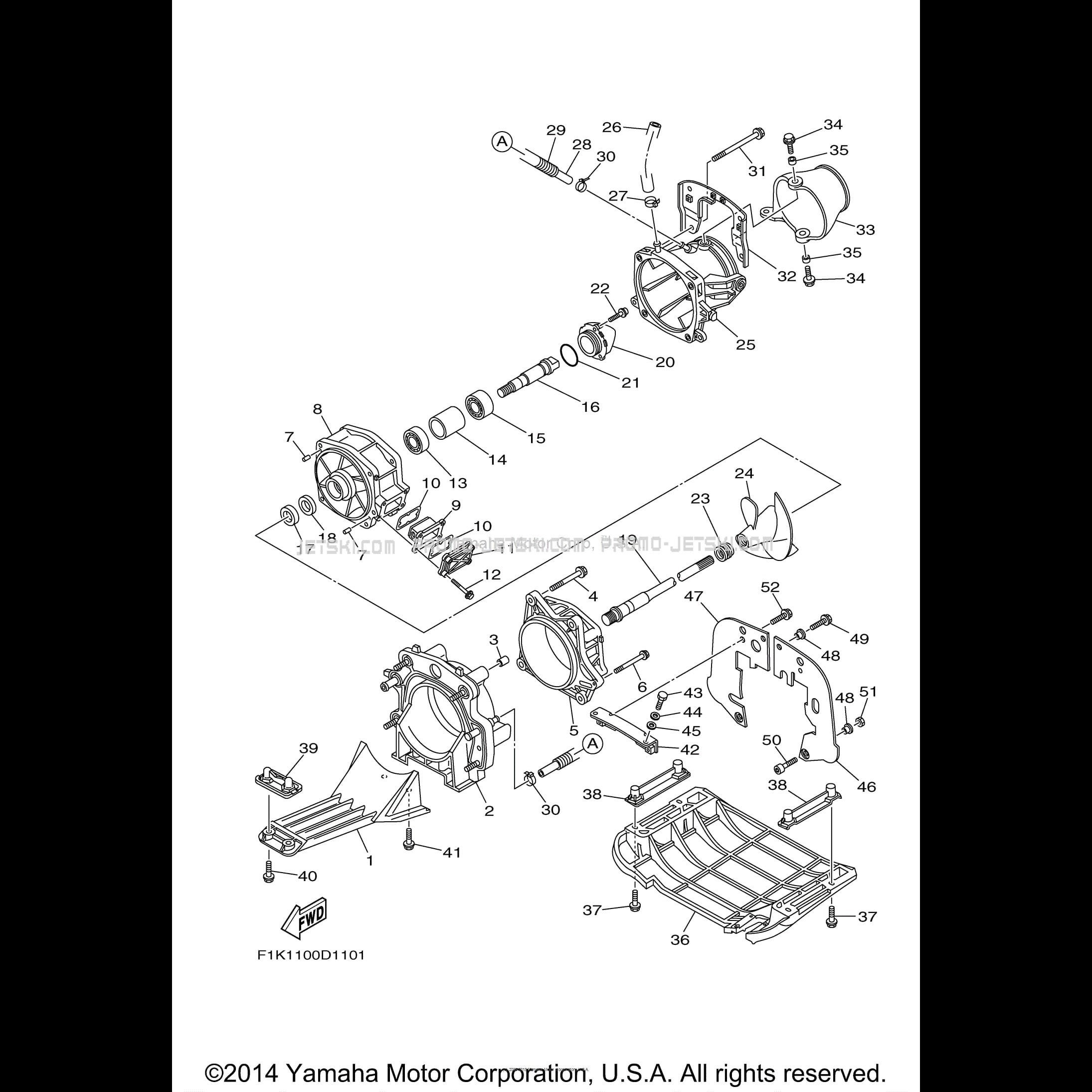 Below, find all references of original and spare parts for JET UNIT 1 for your Yamaha WaveRunner VX Cruiser - VX1100AGW - 2008 2008 WaveRunner and available at Promo-jetski.com.