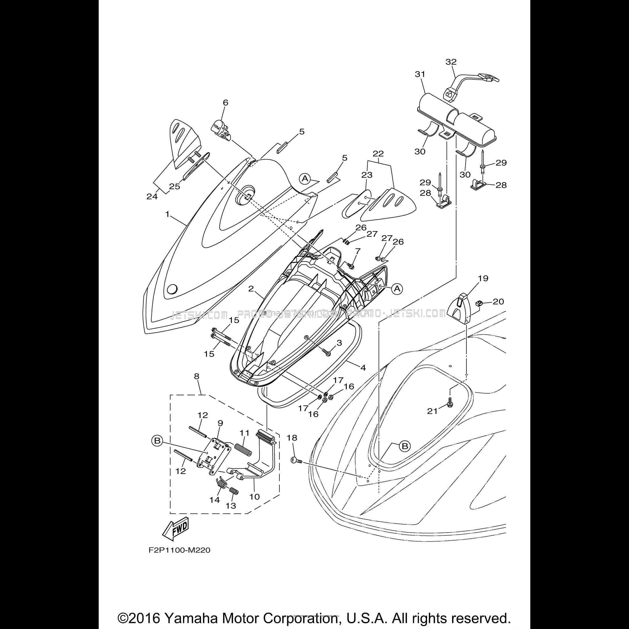 Voici le schéma présentant le ENGINE HATCH 2 pour un Yamaha WAVERUNNER V1 SPORT - VX1050DR - 2016.