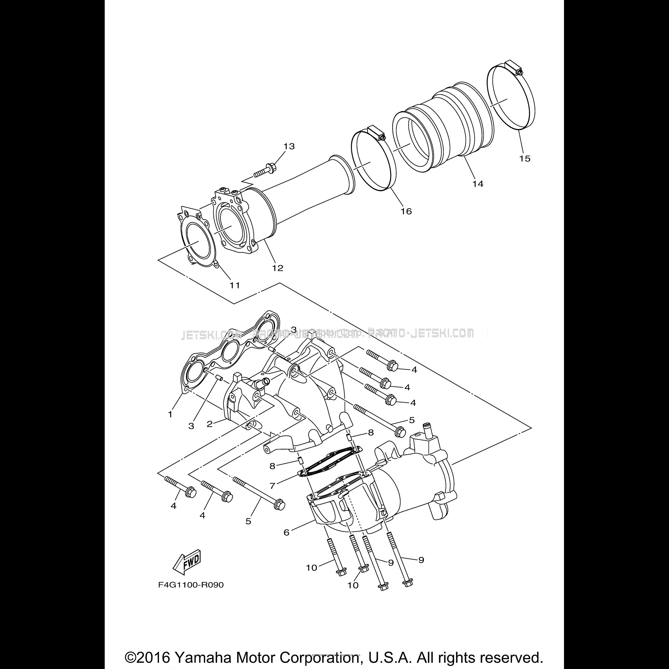 Voici le schéma présentant le EXHAUST 1 pour un Yamaha WAVERUNNER V1 SPORT - VX1050DR - 2016.