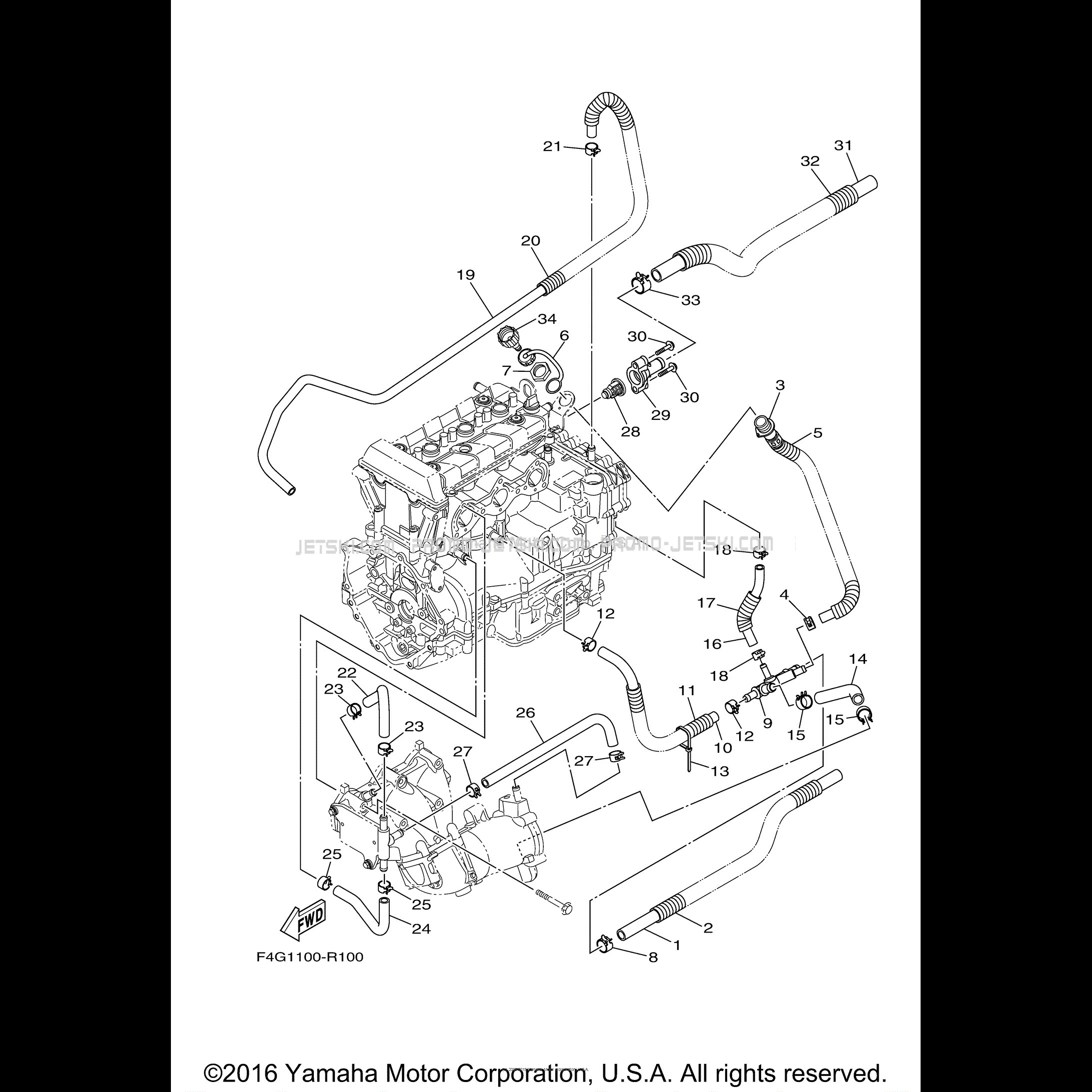Voici le schéma présentant le EXHAUST 2 pour un Yamaha WAVERUNNER V1 SPORT - VX1050DR - 2016.