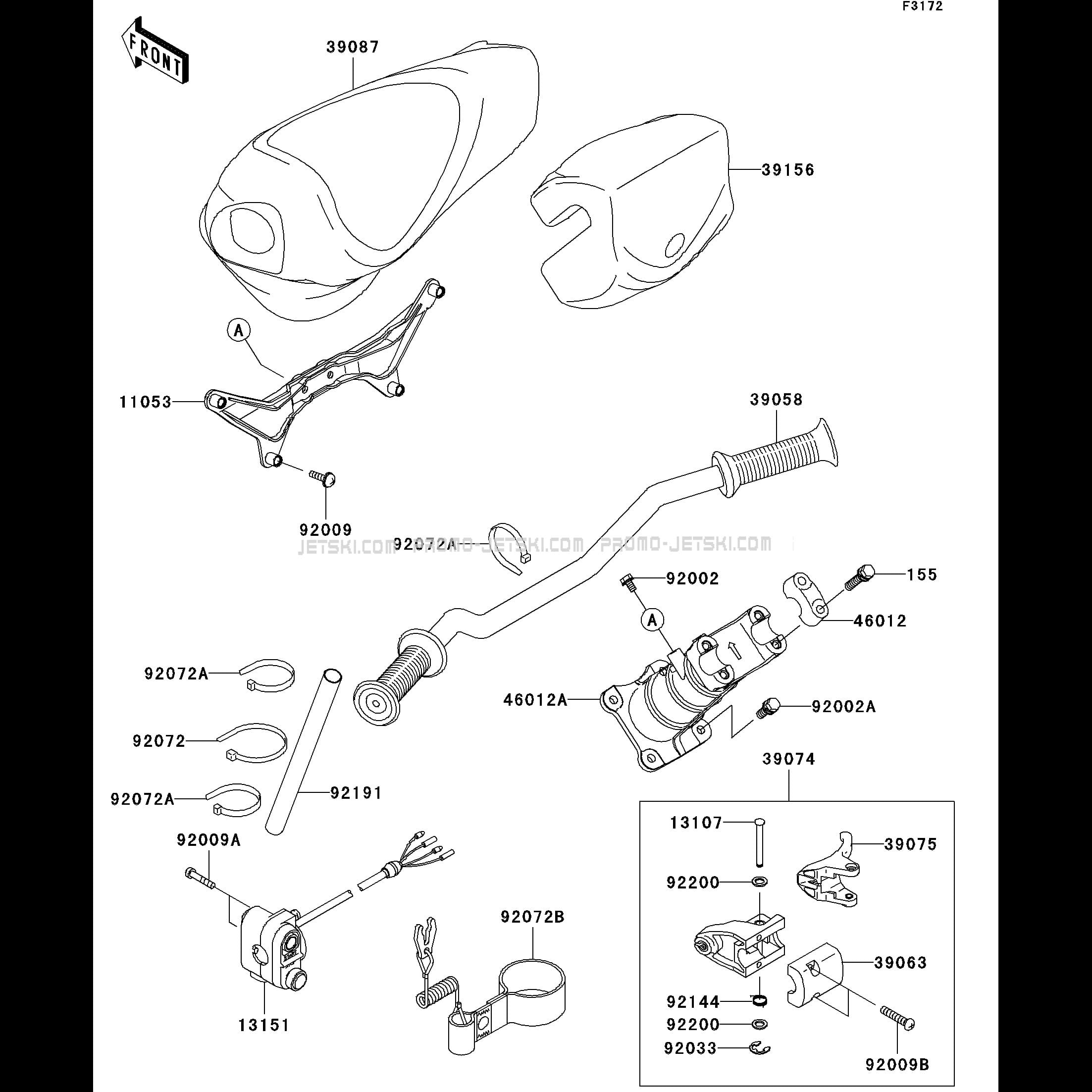 Voici le schéma présentant le Handlebar pour un Kawasaki STX-15F.