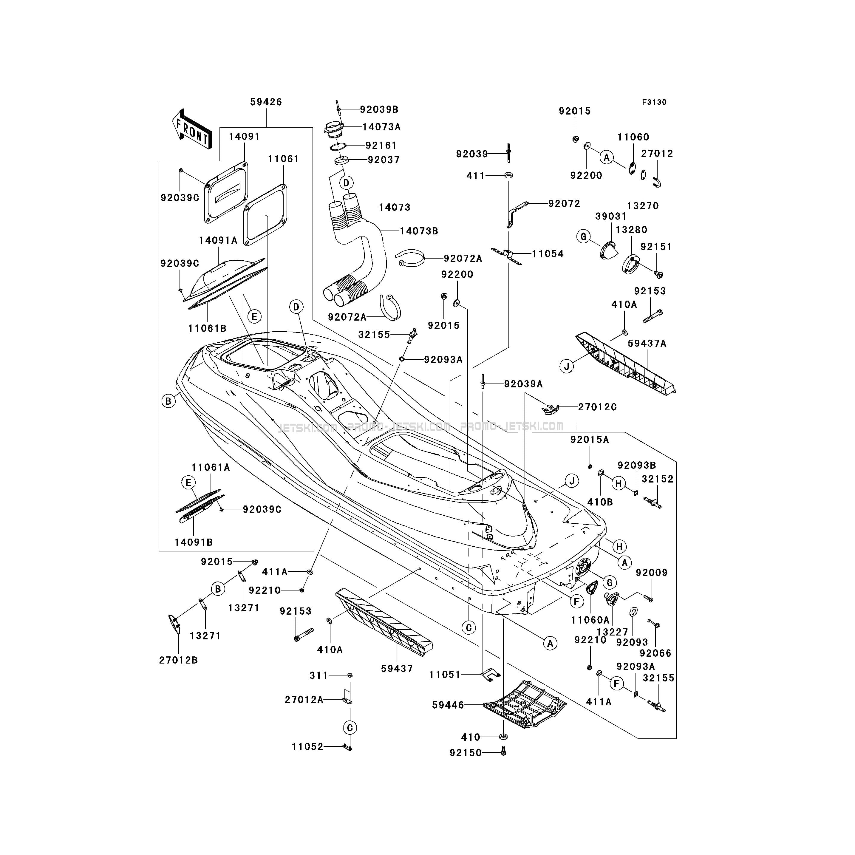 Voici le schéma présentant le Hull pour un Kawasaki Ultra 260LX.