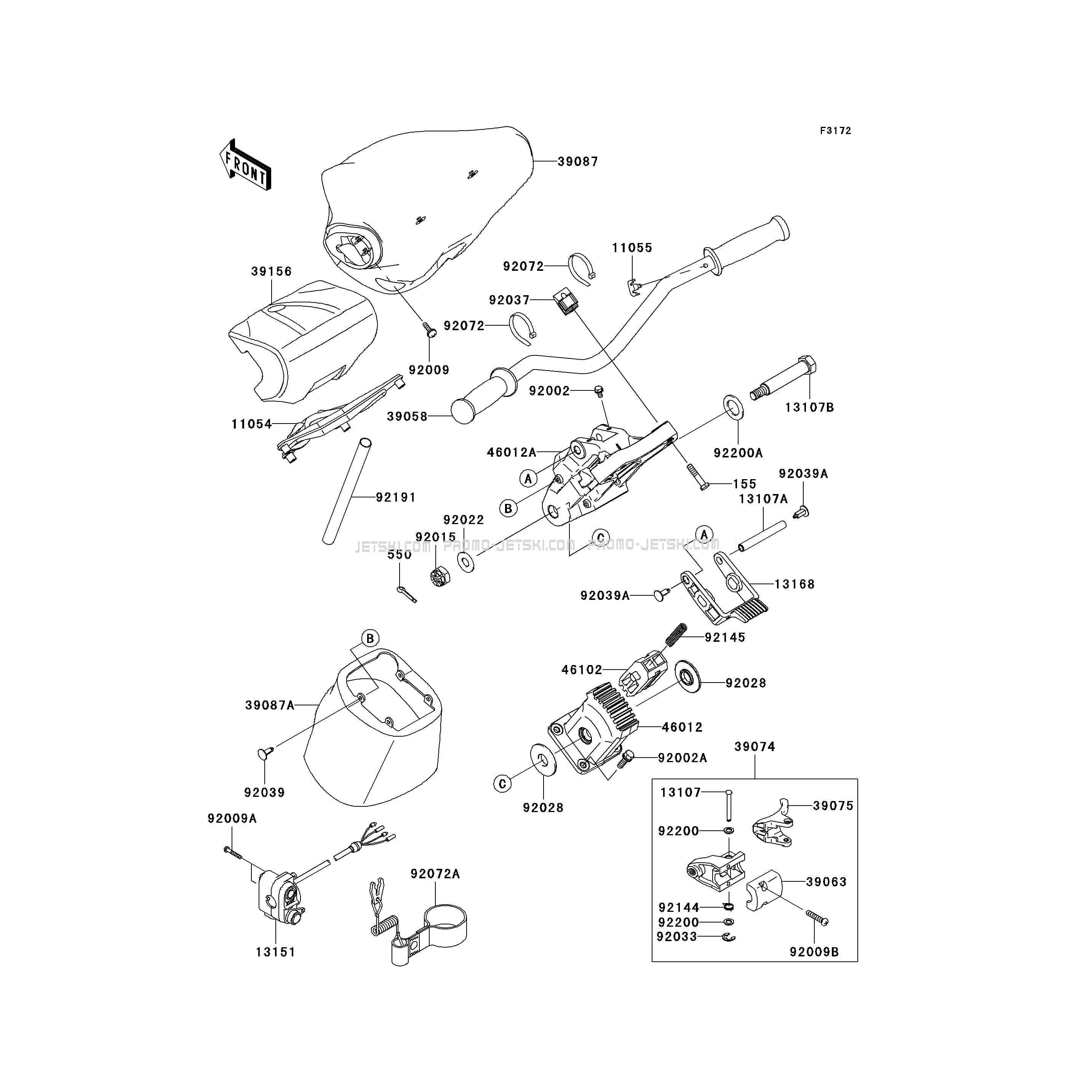 Voici le schéma présentant le Handlebar pour un Kawasaki Ultra 260X.