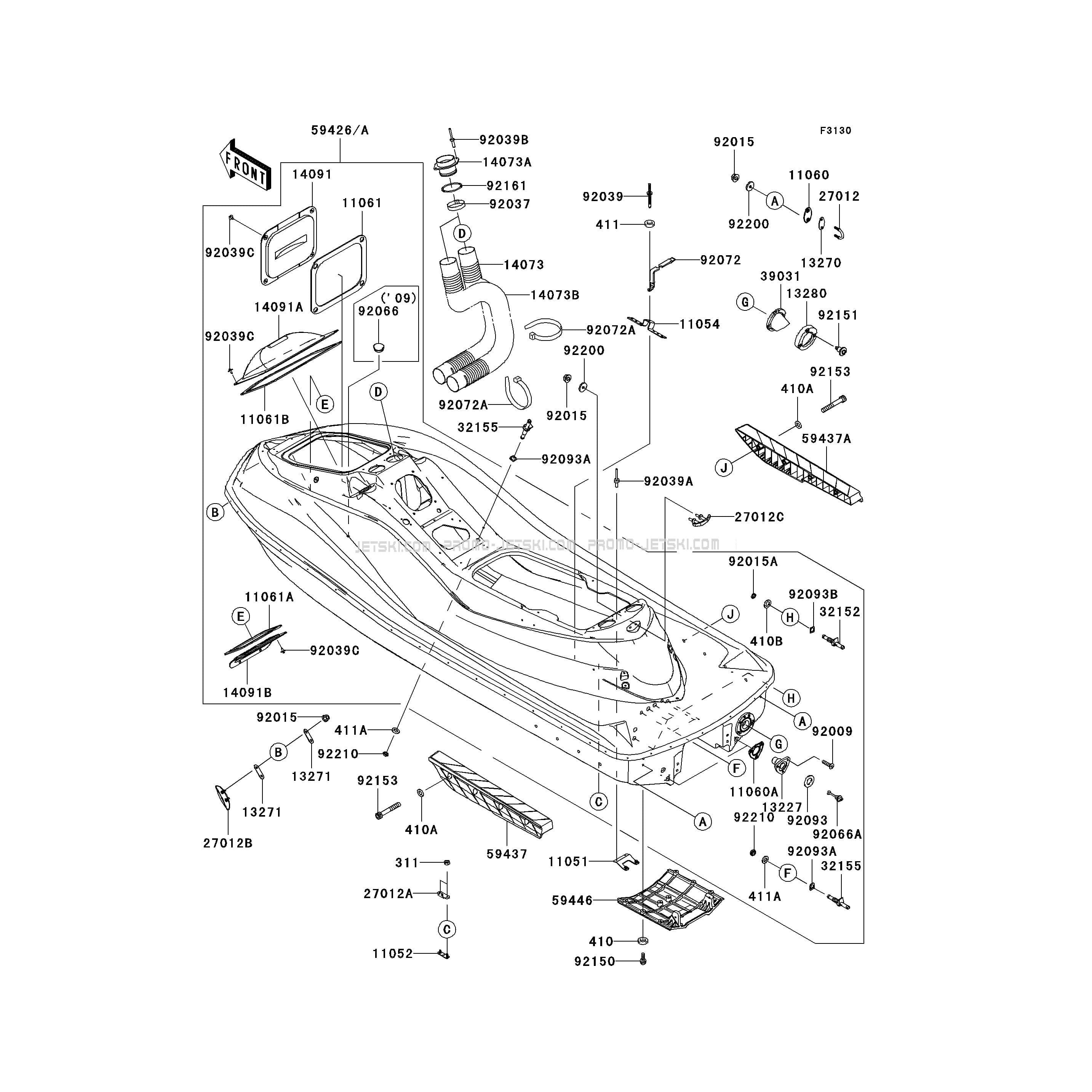 Voici le schéma présentant le Hull pour un Kawasaki Ultra 260X.