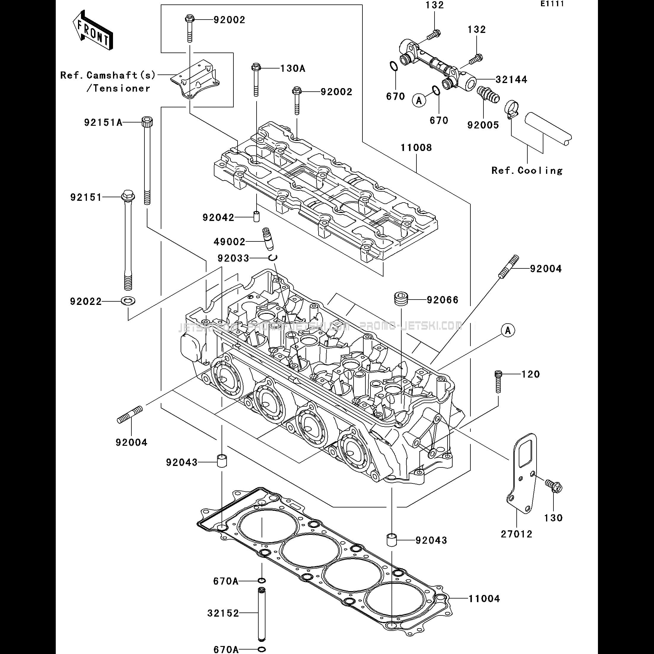 Ci-dessous, retrouvez toutes références des pièces détachées de rechange et d'origine pour Cylinder Head pour votre Kawasaki Ultra LX 2011 et disponibles chez Promo-jetski.com.