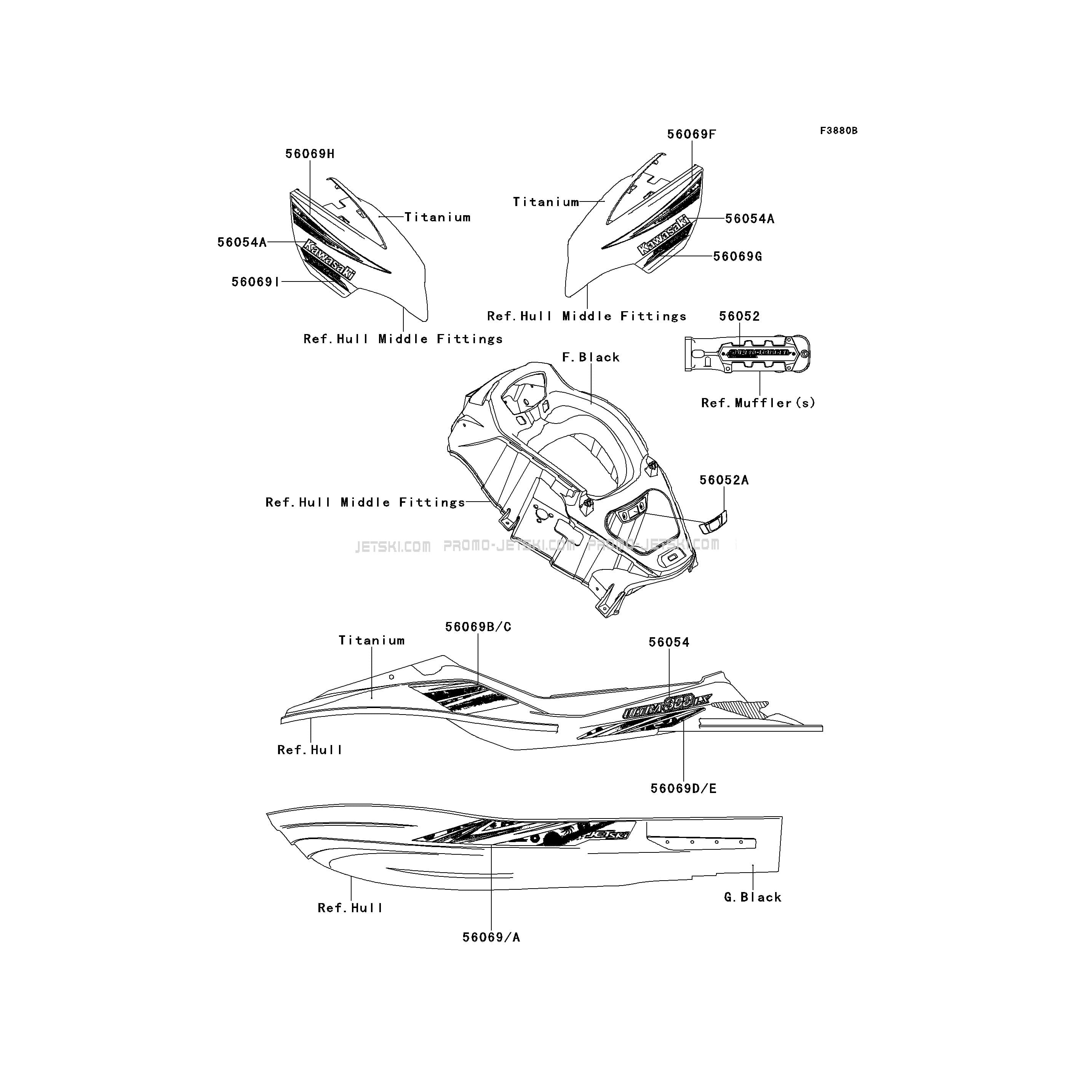 Ci-dessous, retrouvez toutes références des pièces détachées de rechange et d'origine pour Decals(Titanium)(JDF) pour votre Kawasaki Ultra 300LX 2013 et disponibles chez Promo-jetski.com.