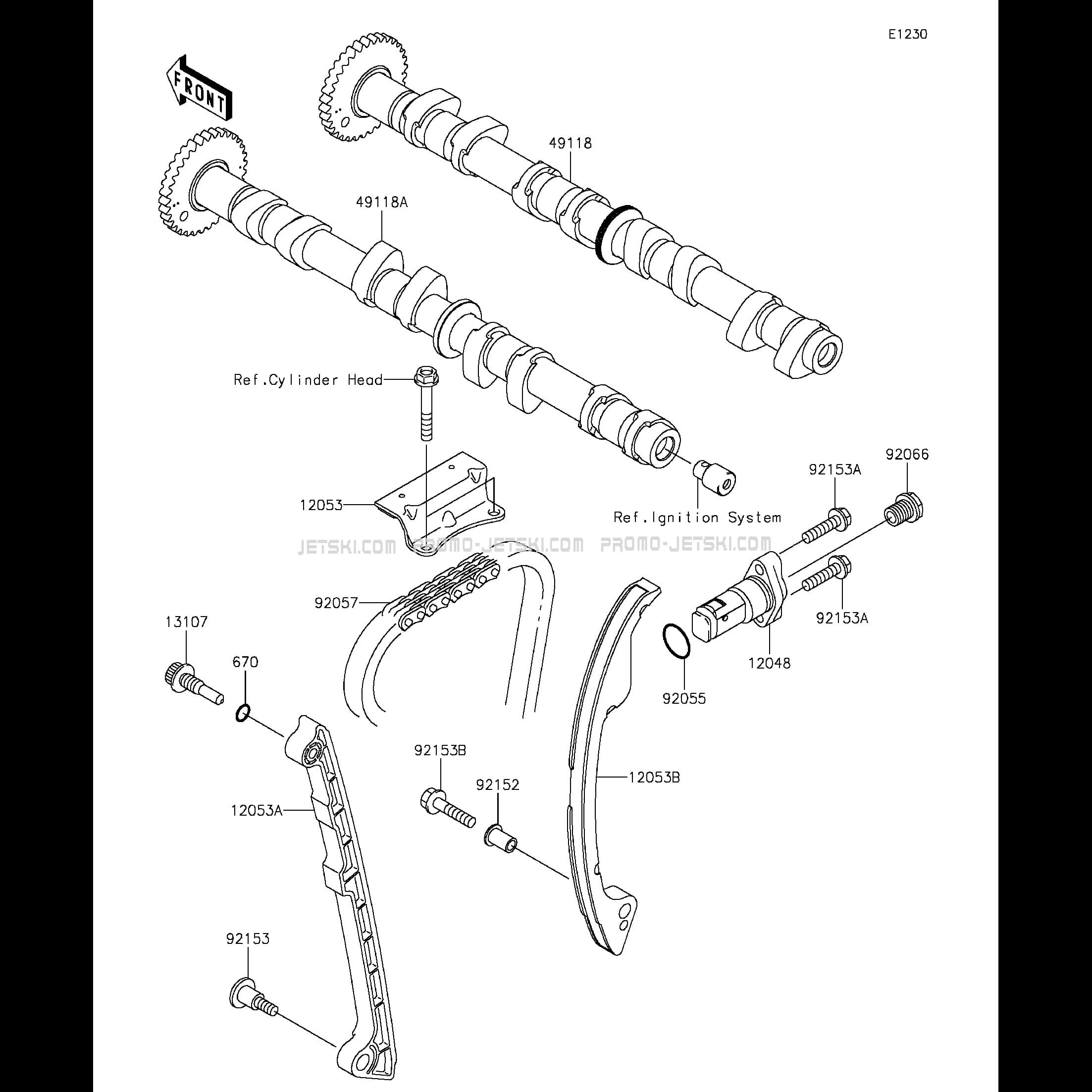 Ci-dessous, retrouvez toutes références des pièces détachées de rechange et d'origine pour Camshaft(s)/Tensioner pour votre Kawasaki Ultra LX 2014 et disponibles chez Promo-jetski.com.