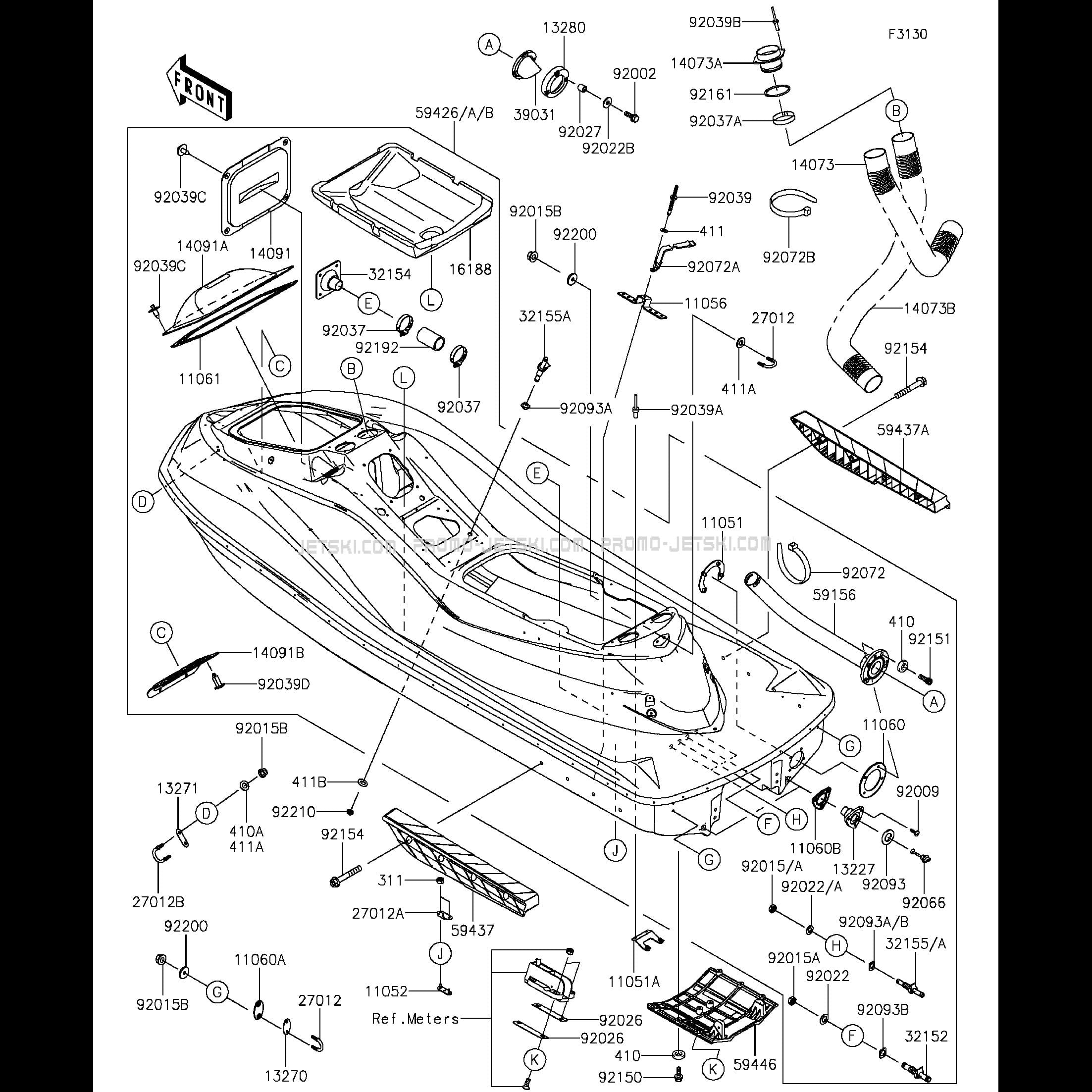 Voici le schéma présentant le Hull pour un Kawasaki Ultra LX.