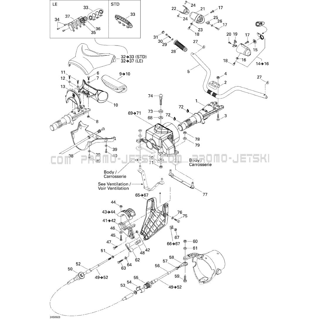 Voici le schéma présentant le 07- Steering System LE pour un Sea-Doo GTI LE RFI, 2005.