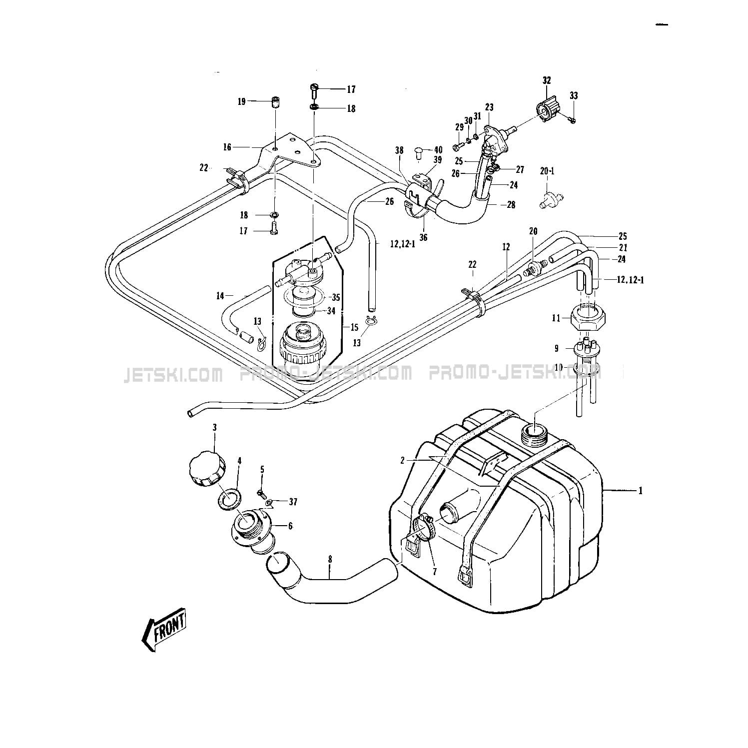 Voici le schéma présentant le FUEL TANK ('77-'78 A1/A1A/A2) pour un Kawasaki JS440.