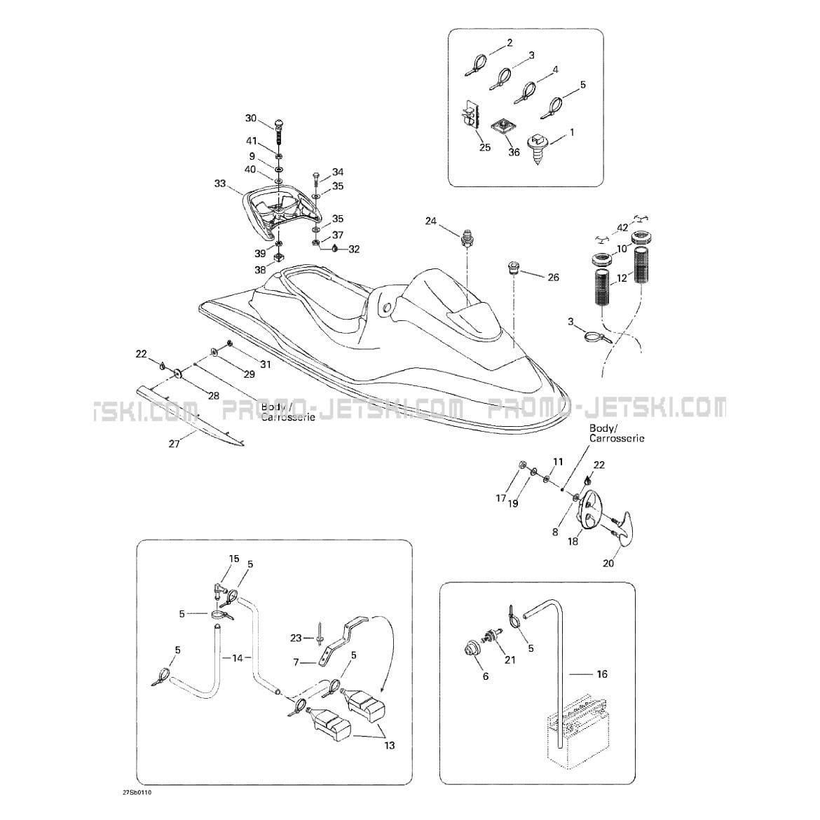 Ci-dessous, retrouvez toutes références des pièces détachées de rechange et d'origine pour 09- Body, Front View pour votre Sea-Doo GSX RFI, 5549, 2001 2001 et disponibles chez Promo-jetski.com.