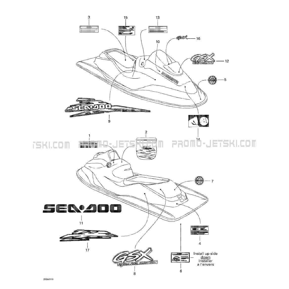Ci-dessous, retrouvez toutes références des pièces détachées de rechange et d'origine pour 09- Decals pour votre Sea-Doo GSX RFI, 5549, 2001 2001 et disponibles chez Promo-jetski.com.