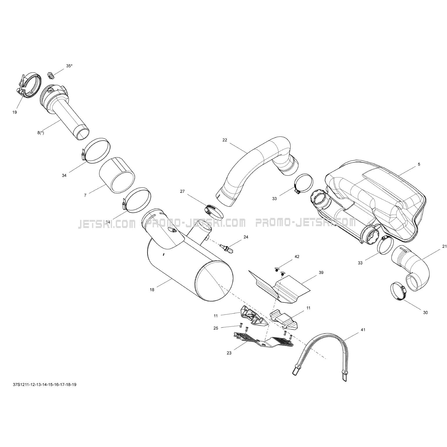 Voici le schéma présentant le 01- Exhaust System pour un Sea-Doo GTX S 155, 2012.
