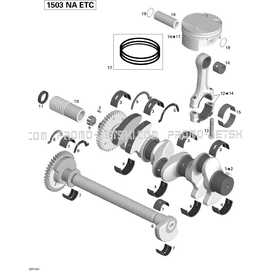 Voici le schéma présentant le 01- Crankshaft, Pistons And Balance Shaft pour un Sea-Doo GTX S 155, 2012.