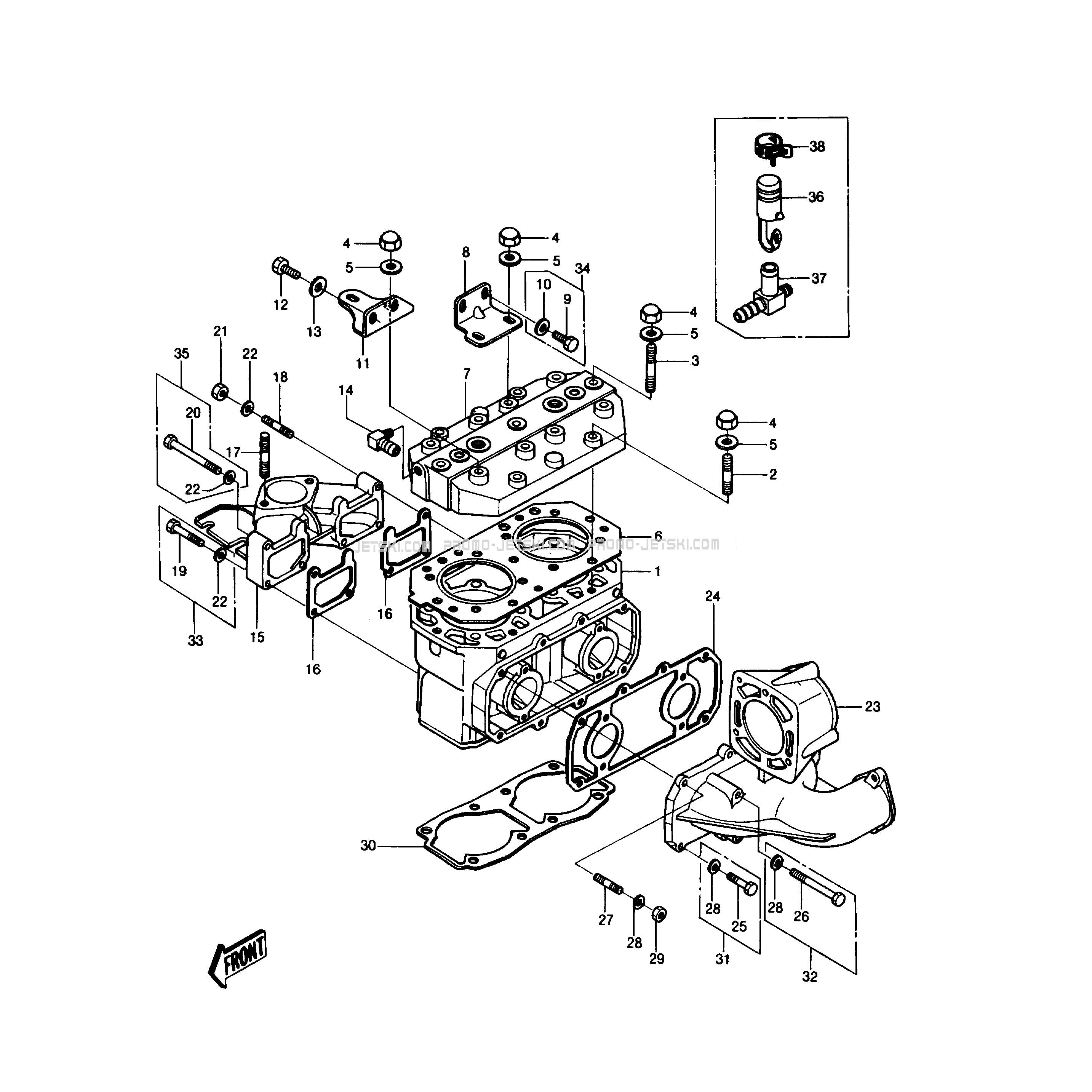 Ci-dessous, retrouvez toutes références des pièces détachées de rechange et d'origine pour CYLINDER HEAD/CYLINDER pour votre Kawasaki JS550 1989 et disponibles chez Promo-jetski.com.