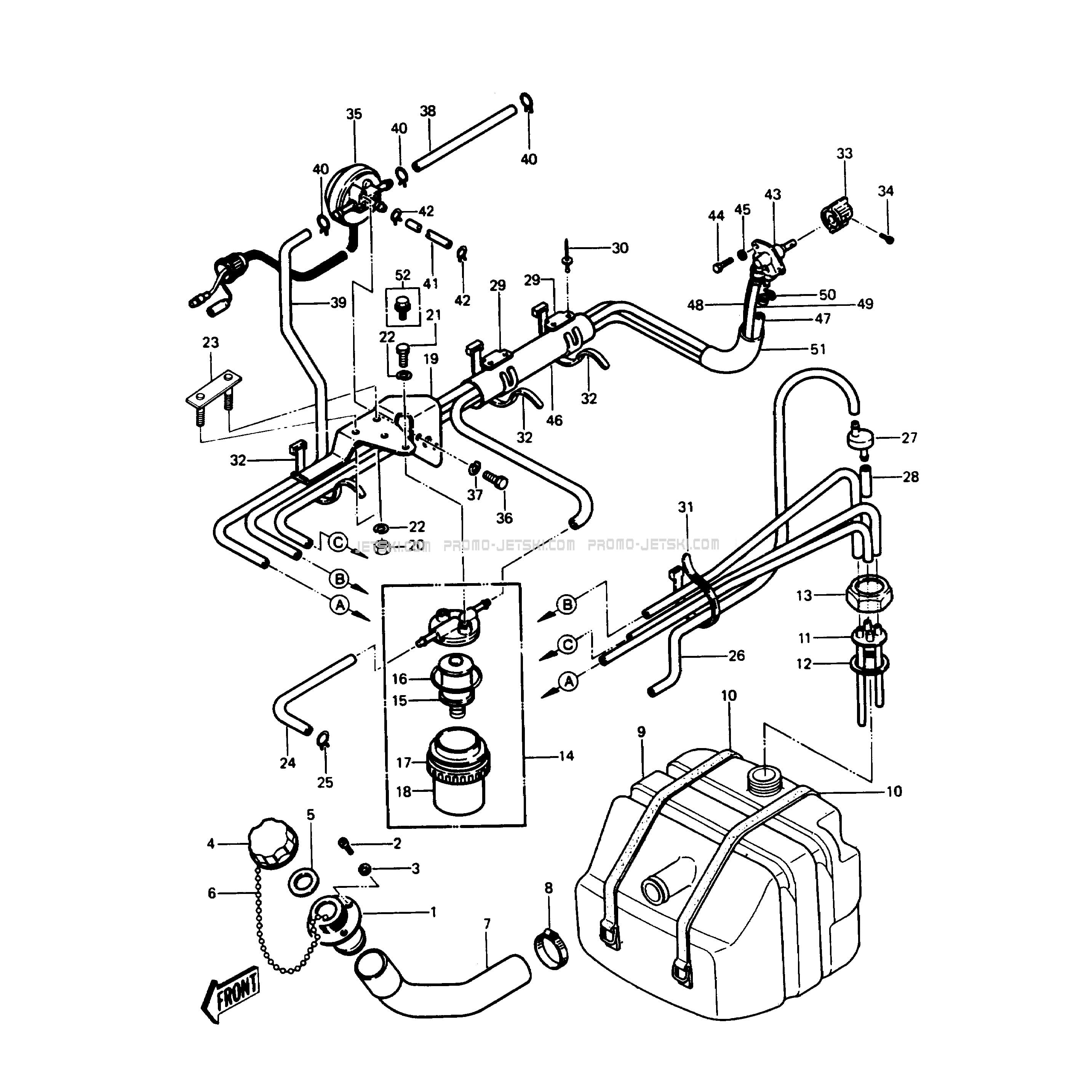 Voici le schéma présentant le FUEL TANK pour un Kawasaki JS550.