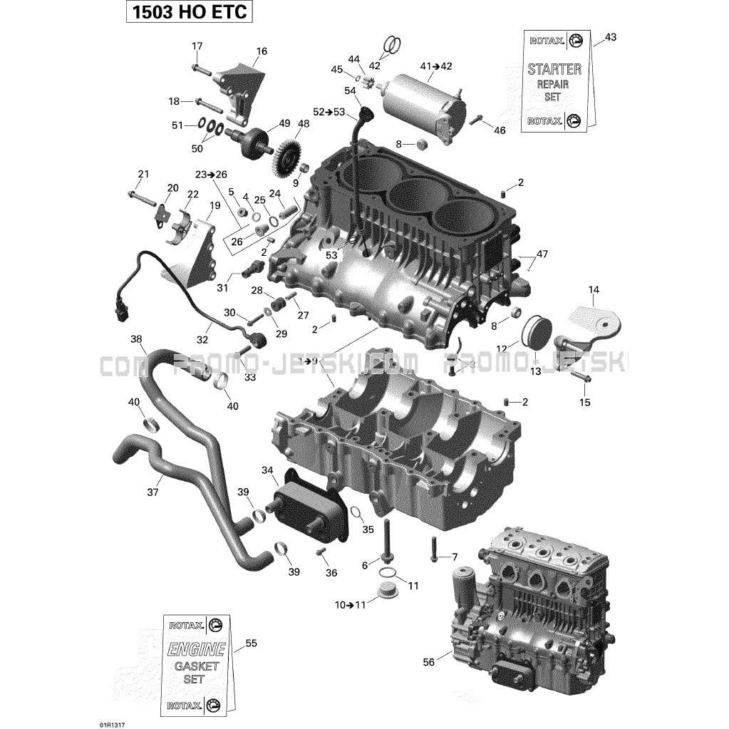 Voici le schéma présentant le 01- Engine Block 2 pour un Sea-Doo RXT-X aS 260 & RS. 2013.