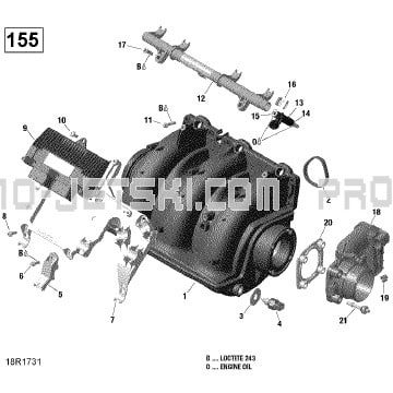 Voici le schéma présentant le 02- Air Intake Manifold And Throttle Body - 130-155 Model Without Suspension pour un Sea-Doo GTI-GTR-GTS, 2017.