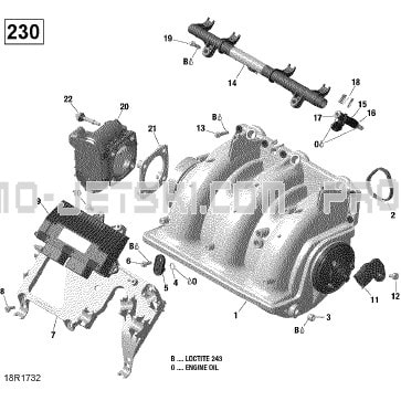 Voici le schéma présentant le 02- Air Intake Manifold And Throttle Body - 230 pour un Sea-Doo GTI-GTR-GTS, 2017.