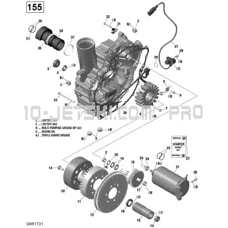 Voici le schéma présentant le 03- PTO Cover And Magneto - 130-155 Model Without Suspension pour un Sea-Doo GTI-GTR-GTS, 2017.