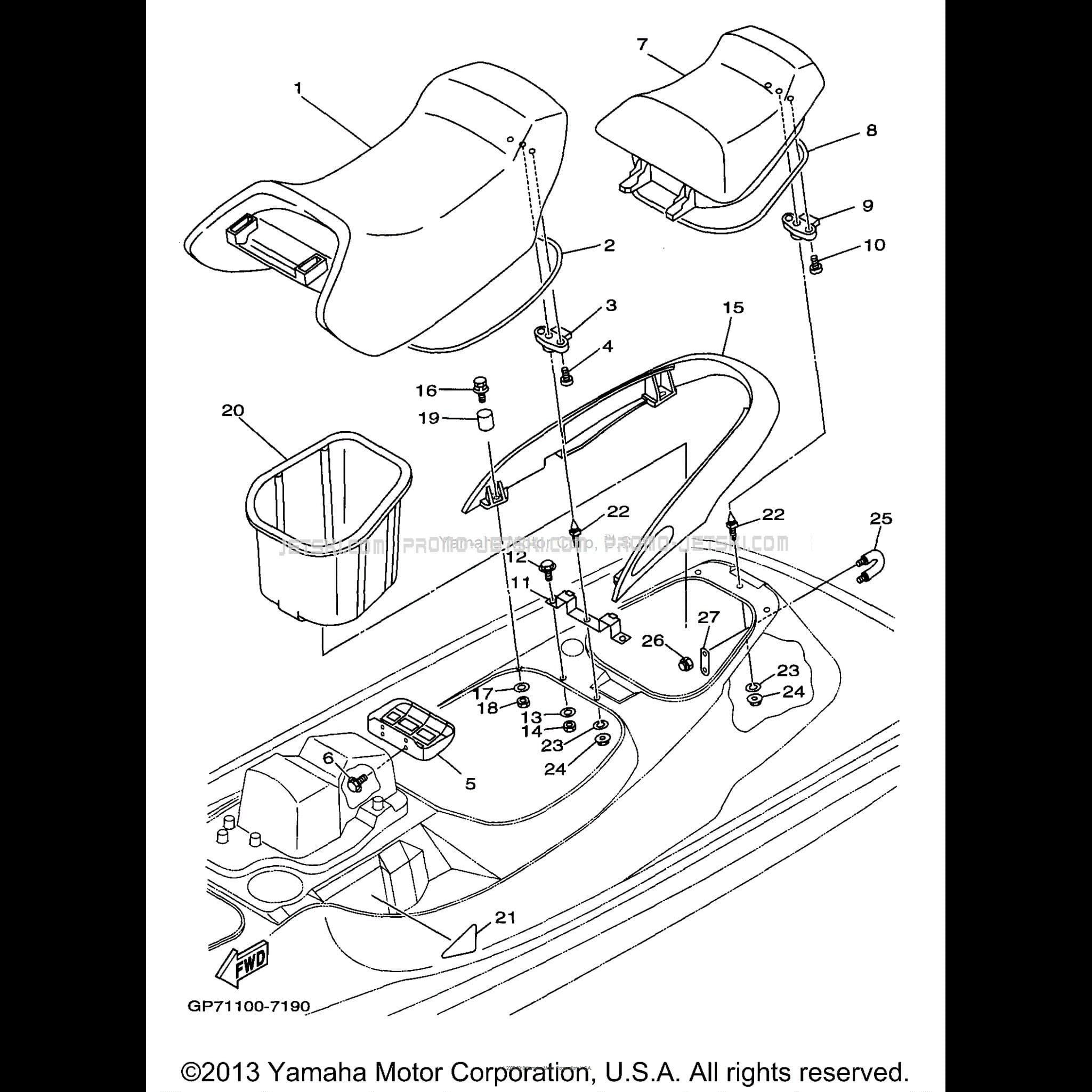Ci-dessous, retrouvez toutes références des pièces détachées de rechange et d'origine pour SEAT UNDER LOCKER pour votre Yamaha WAVE RUNNER GP 760 (GP760V) 1997 1997 WaveRunner et disponibles chez Promo-jetski.com.