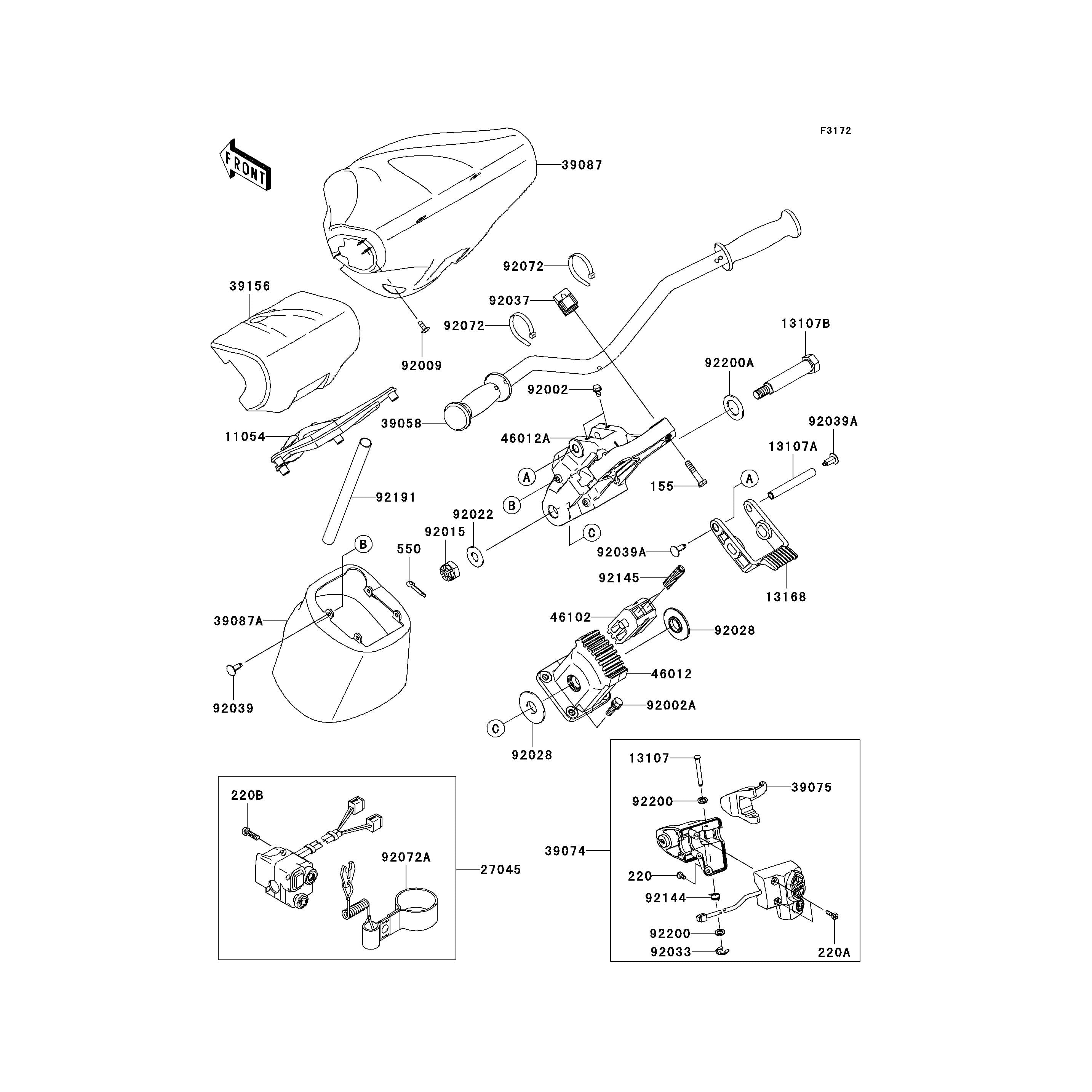 Voici le schéma présentant le Handlebar pour un Kawasaki Ultra 300X.