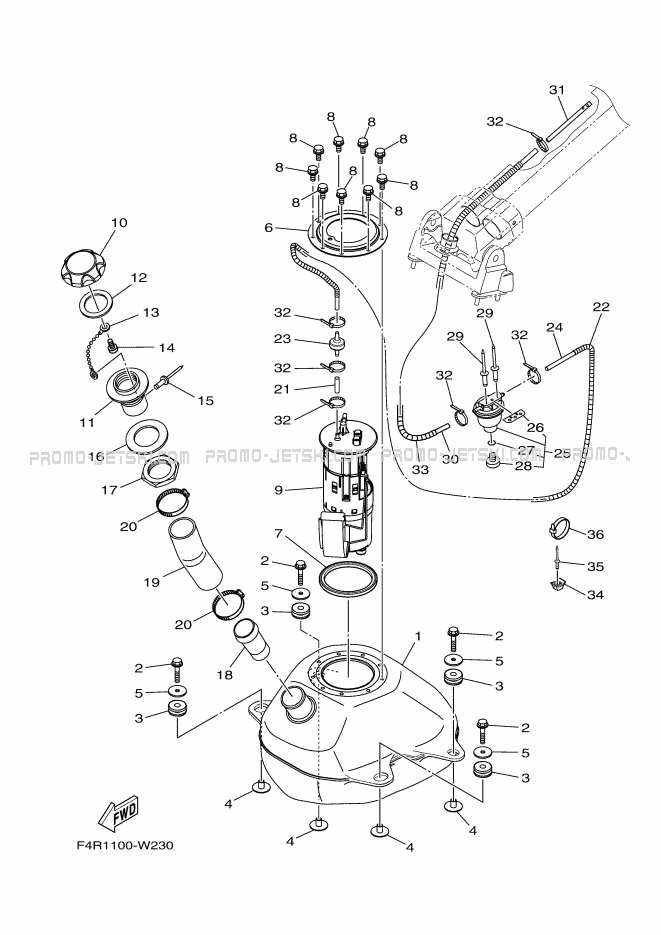 Voici le schéma présentant le FUEL TANK pour un Yamaha SJ1050.
