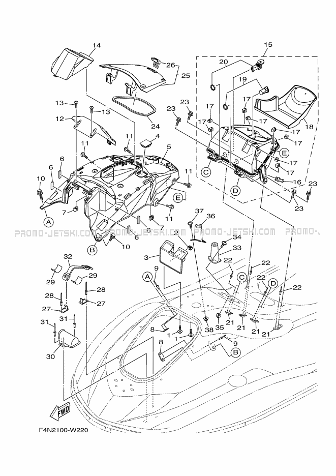 Voici le schéma présentant le ENGINE HATCH 2 pour un Yamaha VX1050C-W.