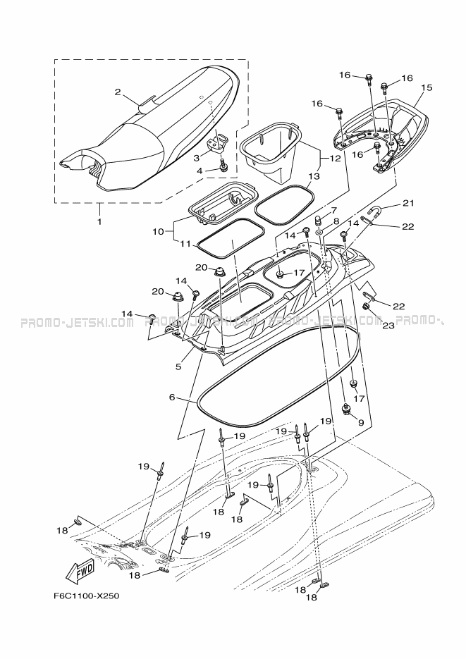 Ci-dessous, retrouvez toutes références des pièces détachées de rechange et d'origine pour SEAT & UNDER LOCKER pour votre Yamaha JB1050-X 2022 WaveRunner et disponibles chez Promo-jetski.com.