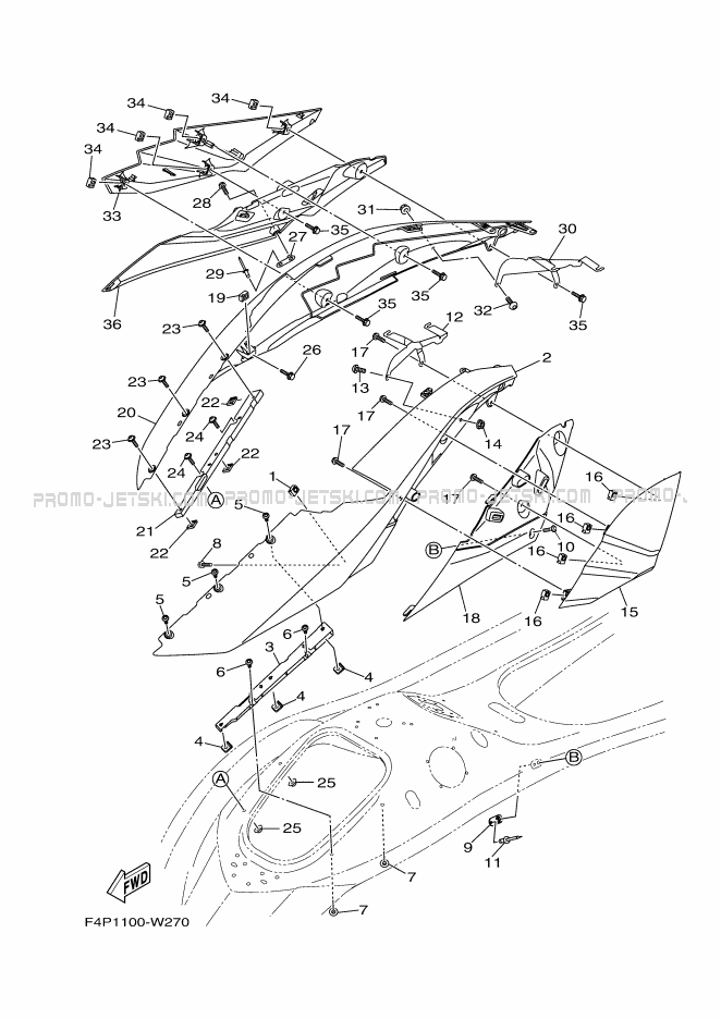 Voici le schéma présentant le ENGINE HATCH 3 pour un Yamaha GP1800B-X.