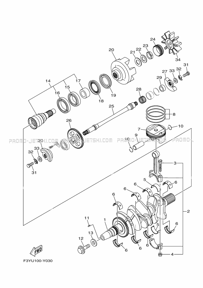 Ci-dessous, retrouvez toutes références des pièces détachées de rechange et d'origine pour VILEBREQUIN & PISTON pour votre Yamaha EX Sport (EX1050B-Y) 2023 WaveRunner et disponibles chez Promo-jetski.com.