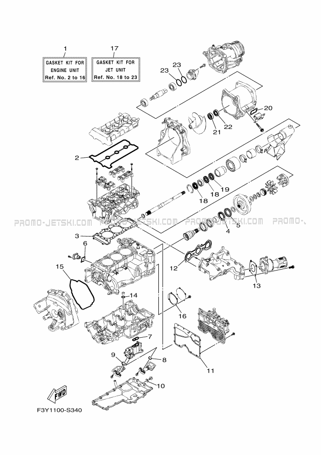 Ci-dessous, retrouvez toutes références des pièces détachées de rechange et d'origine pour REPAIR KIT 1 pour votre Yamaha EX Sport (EX1050B-Y) 2023 WaveRunner et disponibles chez Promo-jetski.com.