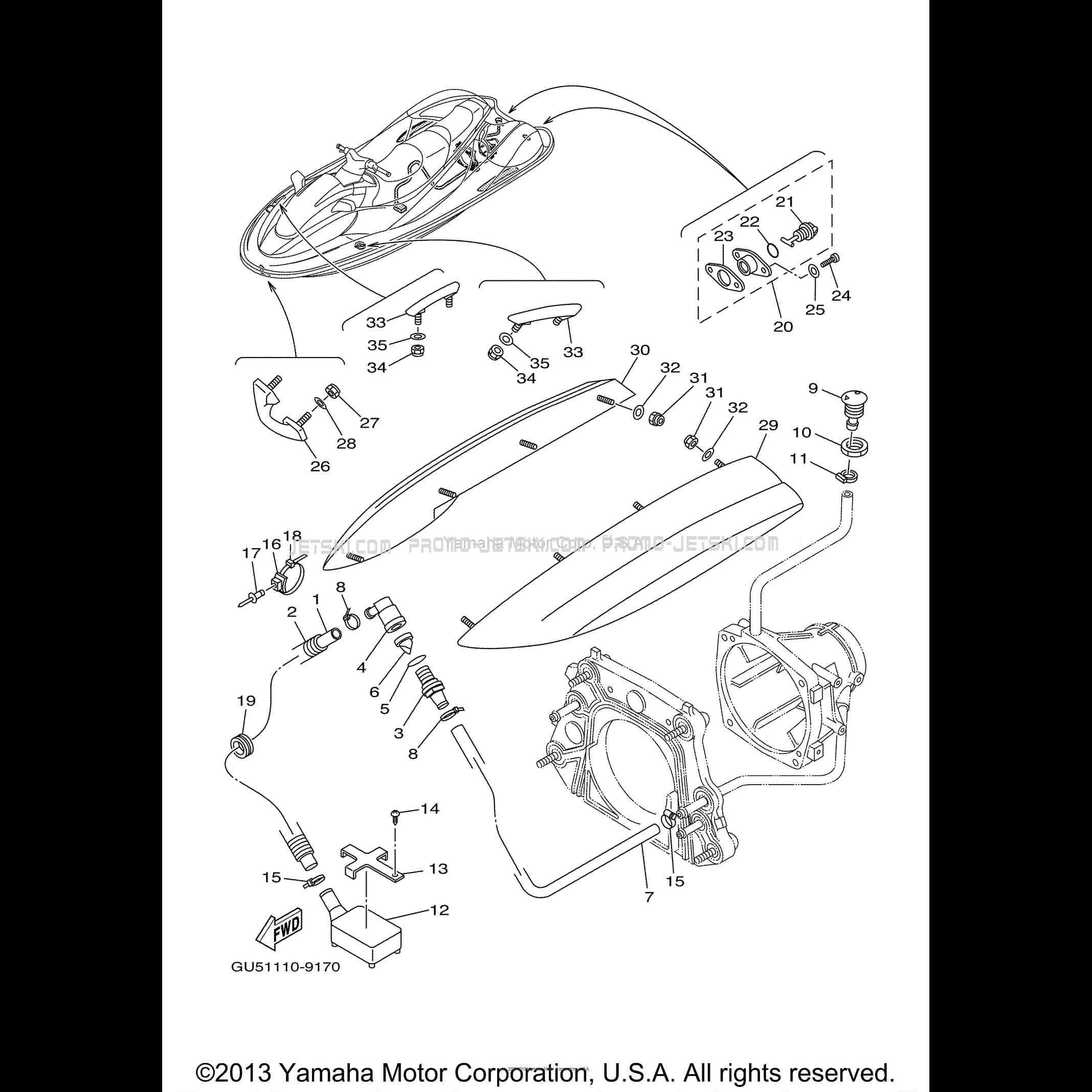 Voici le schéma présentant le HULL DECK pour un Yamaha SUV 1200 (SV1200Y) 2000.