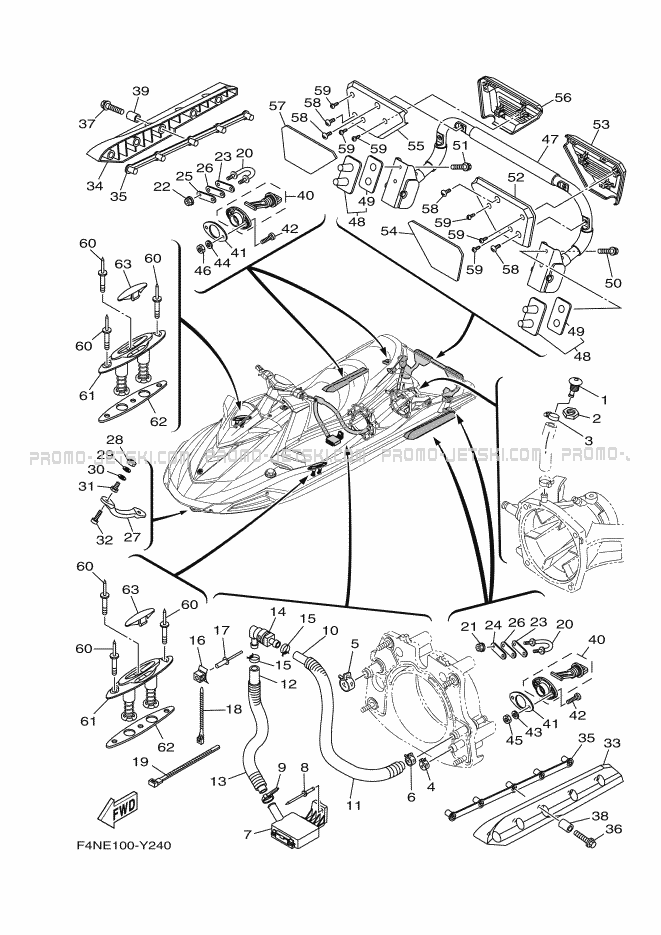 Voici le schéma présentant le HULL & DECK pour un Yamaha VX Cruiser (VX1050B-A).