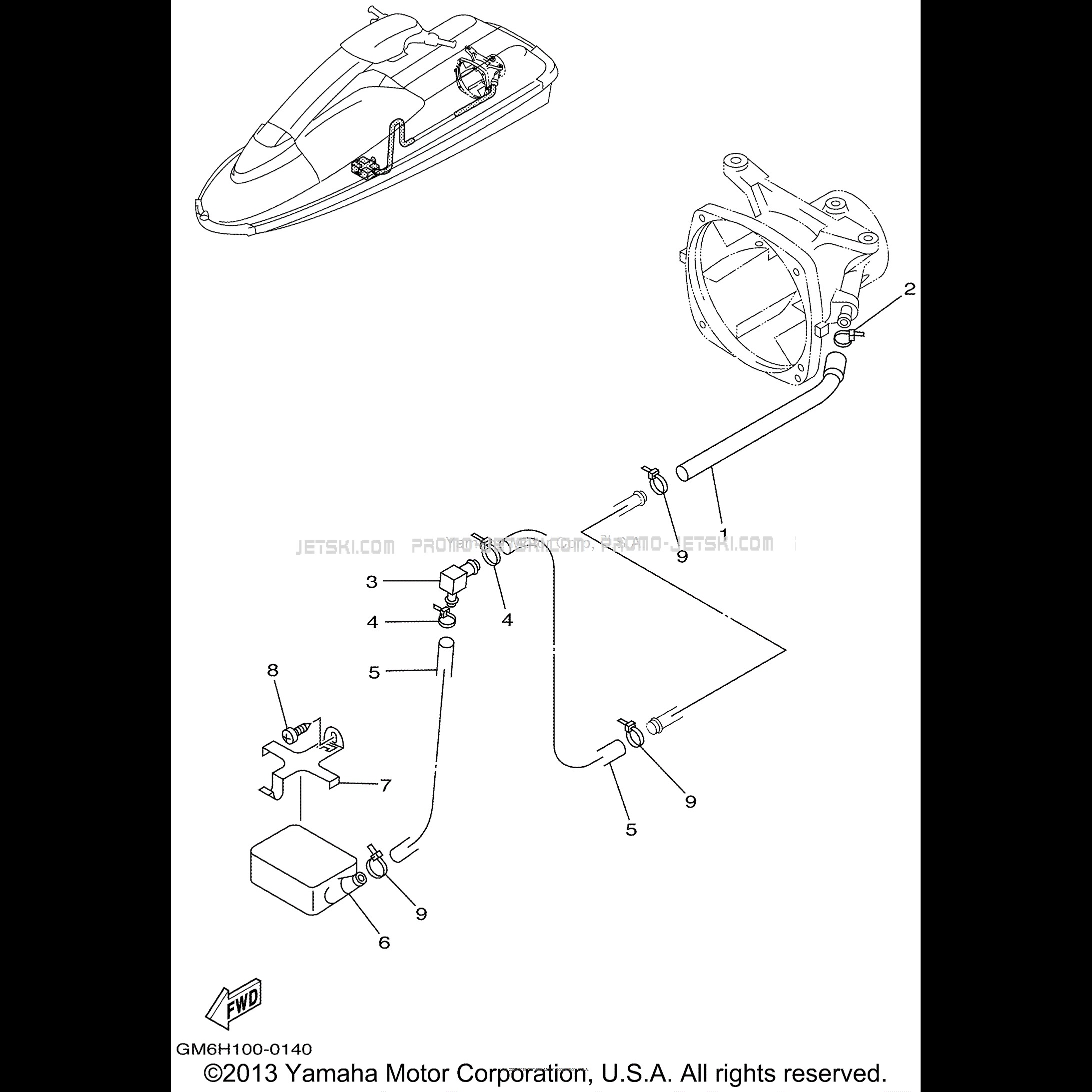 Voici le schéma présentant le HULL DECK pour un Yamaha SUPER JET 700 (SJ700AZ) 2001.