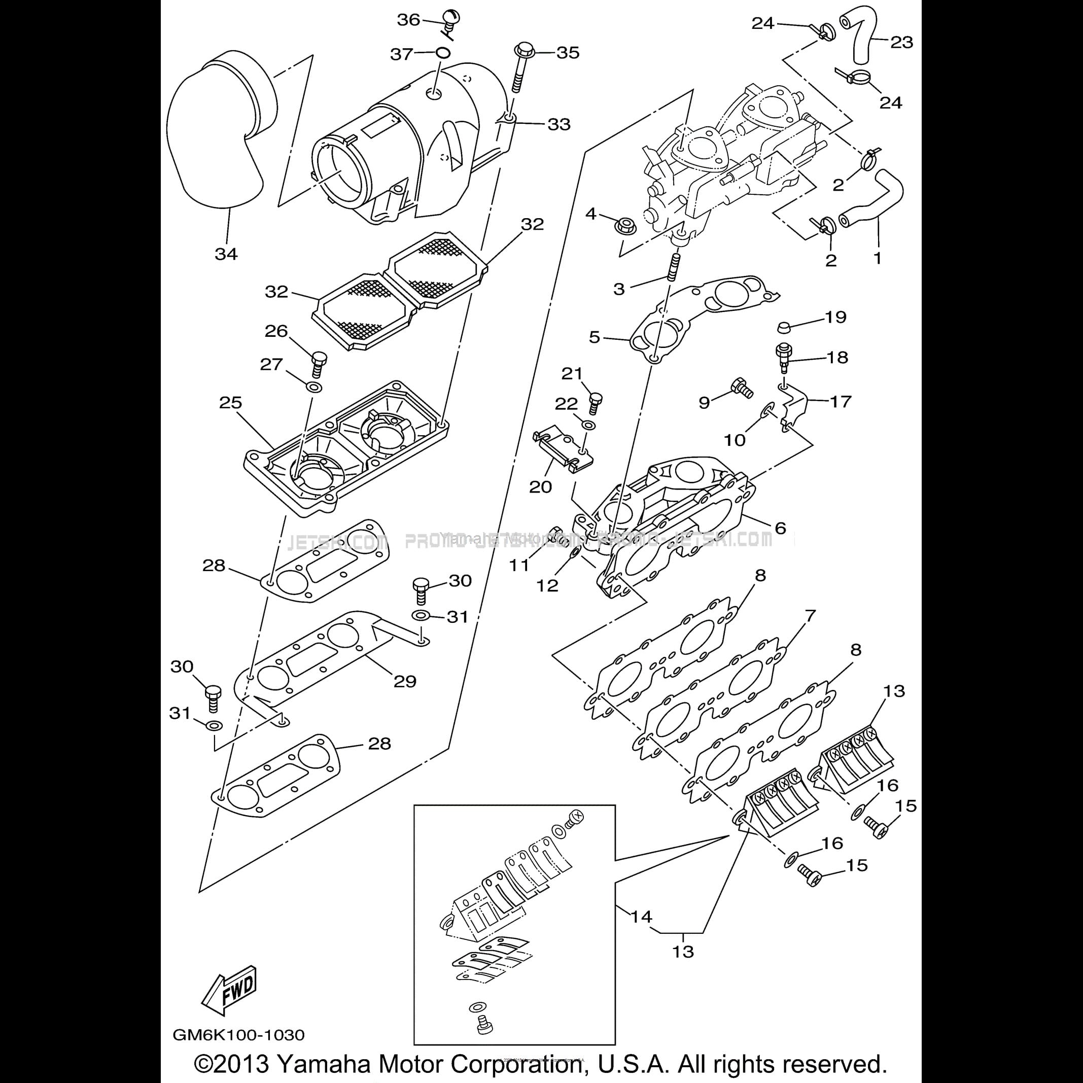 Voici le schéma présentant le INTAKE pour un Yamaha SUPER JET 700 (SJ700AZ) 2001.