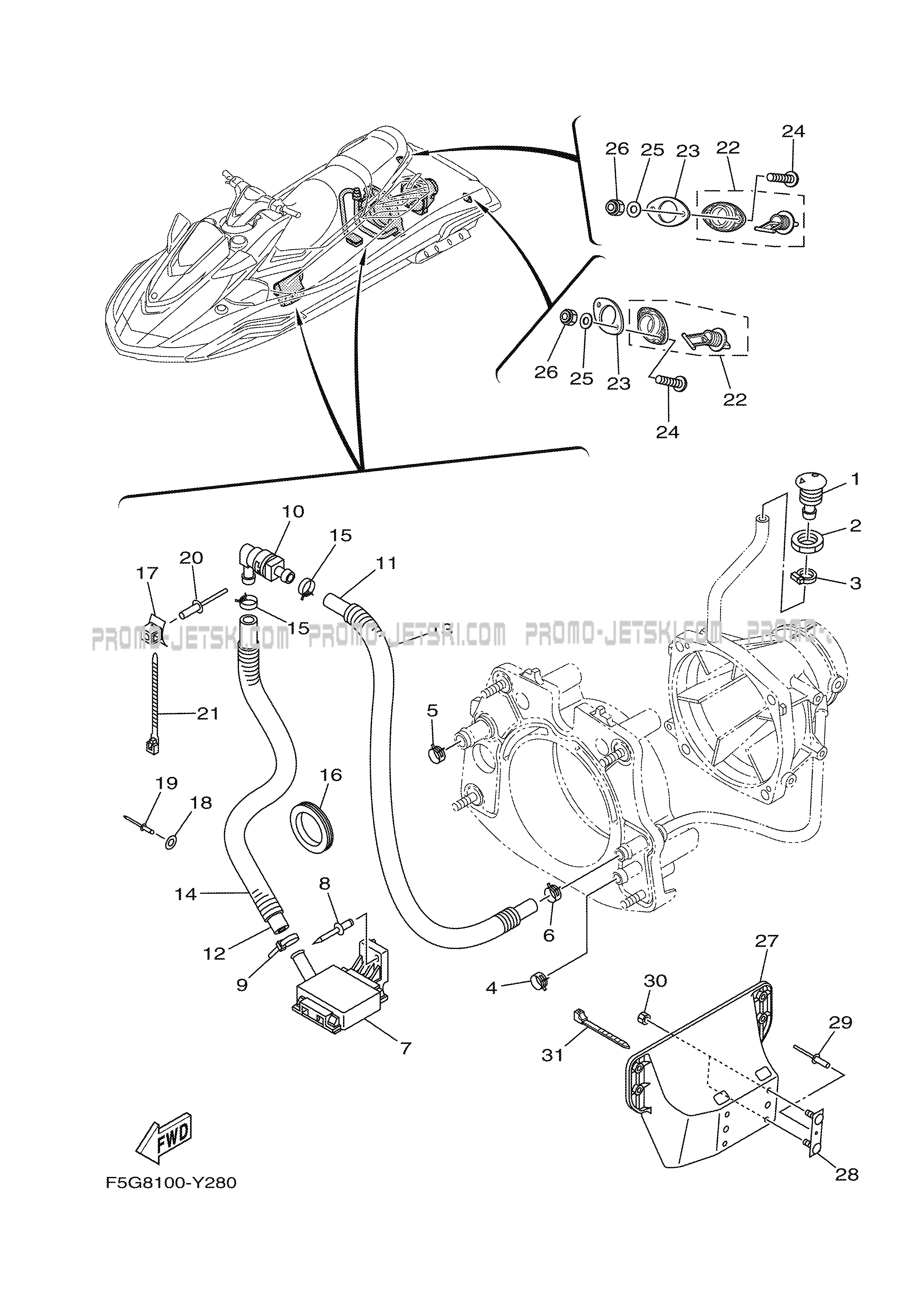 Voici le schéma présentant le HULL & DECK pour un Yamaha FX HO W AUDIO (FX1900BB).