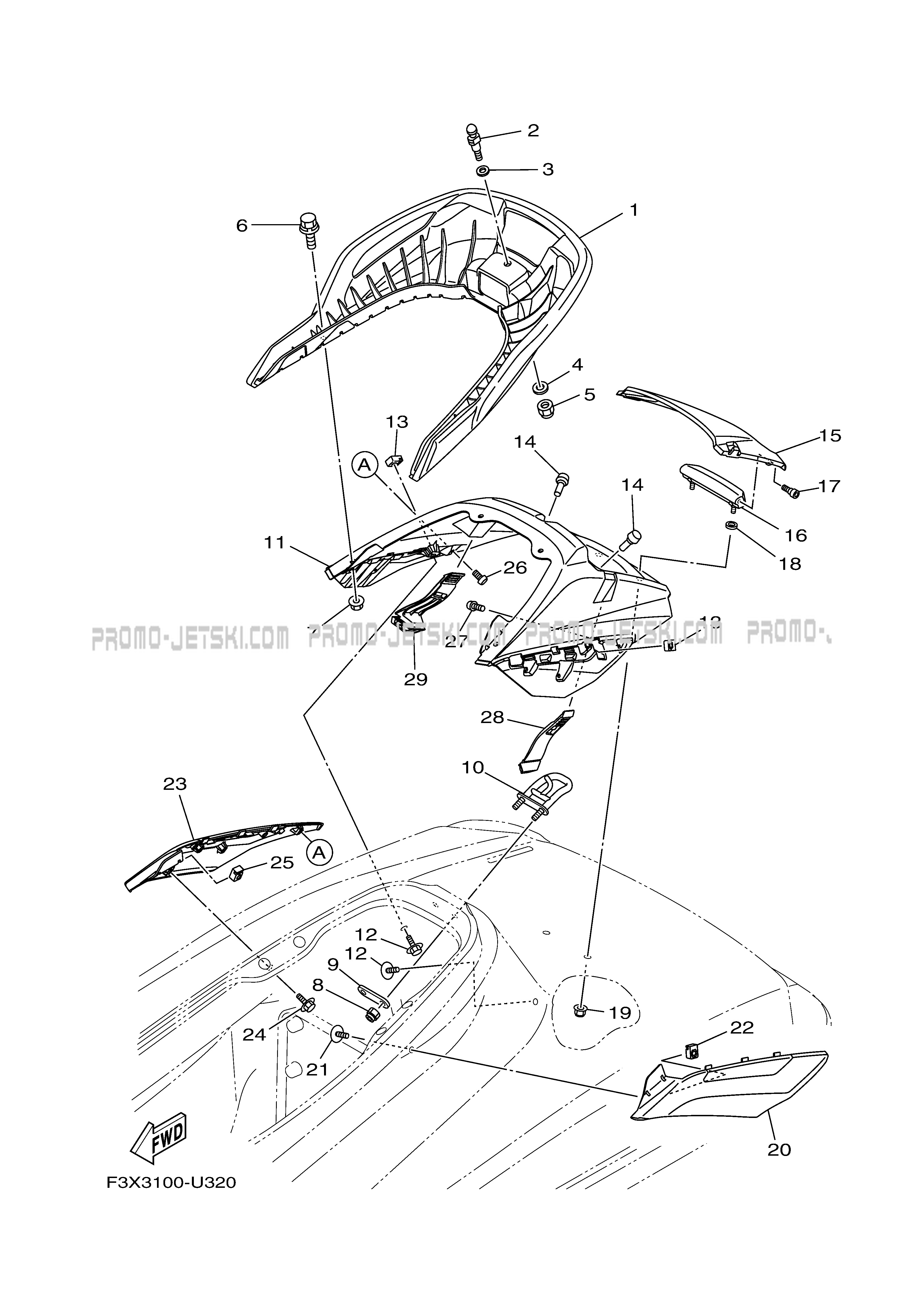 Voici le schéma présentant le SEAT & UNDER LOCKER 2 pour un Yamaha HO (FX1900CB).
