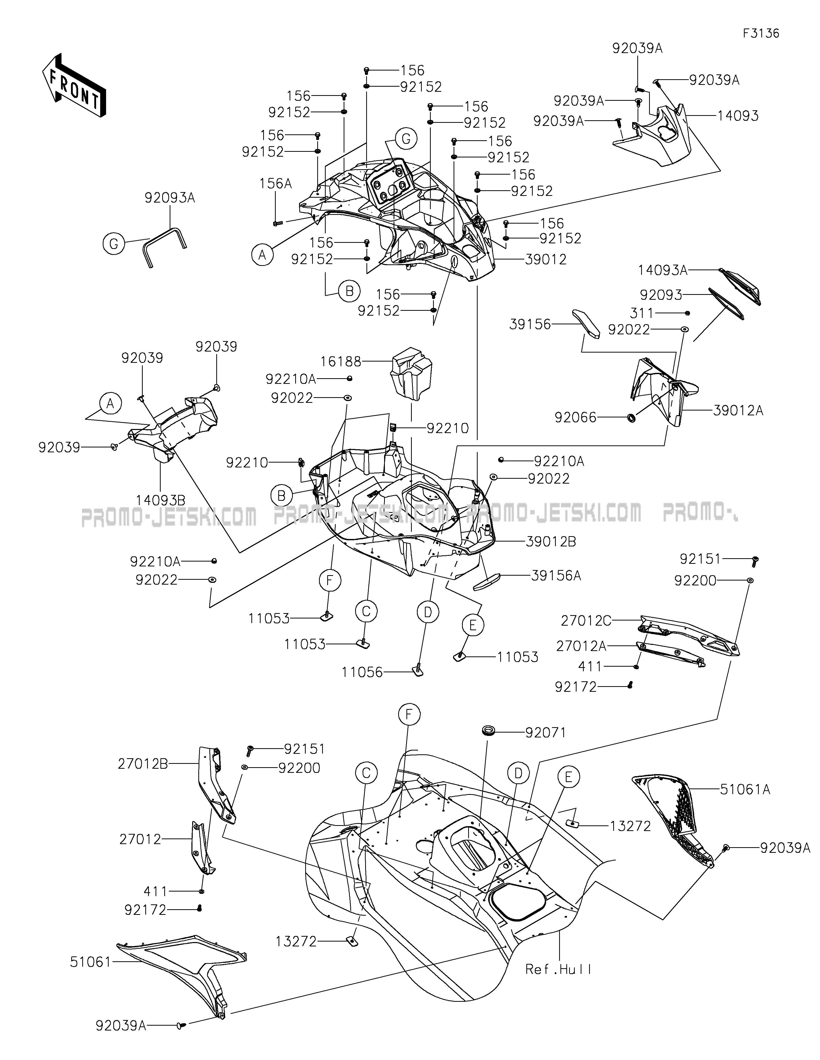 Voici le schéma présentant le Hull Middle Fittings pour un Kawasaki Ultra 310LX-S.