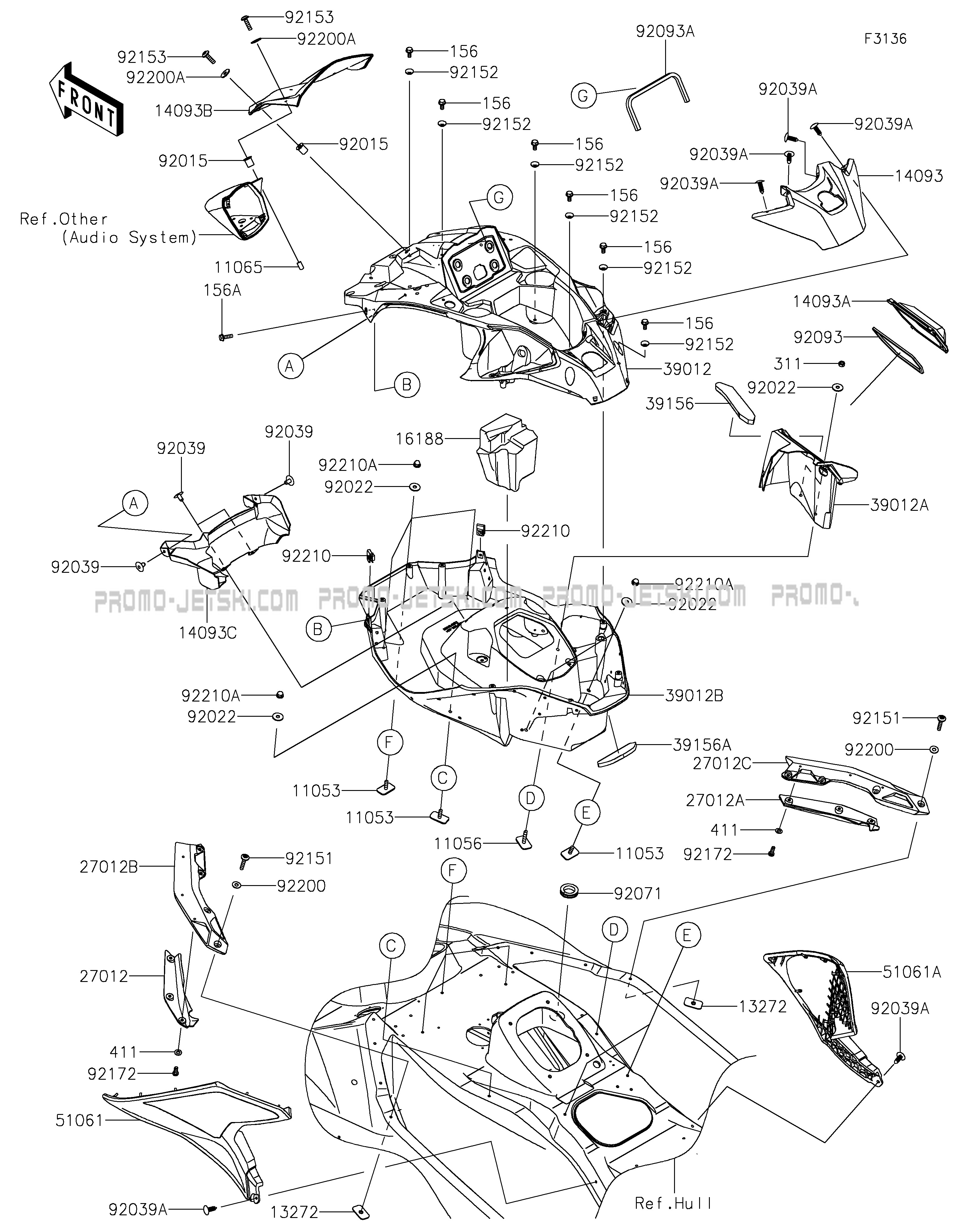 Ci-dessous, retrouvez toutes références des pièces détachées de rechange et d'origine pour Hull Middle Fittings pour votre Kawasaki JET SKI® ULTRA® 160LX 2025 et disponibles chez Promo-jetski.com.