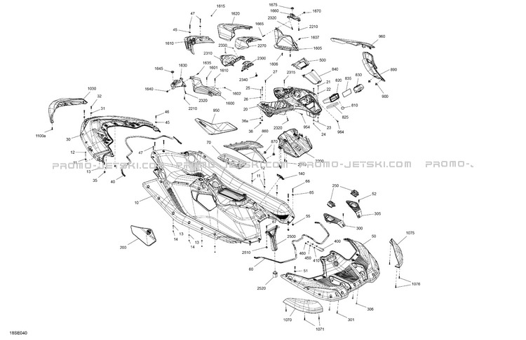 Voici le schéma présentant le Body - System pour un Sea-Doo SPARK - 900 HO ACE - CONV - 2UP - 64SK - Blue High Gloss 2025 00064SK00.