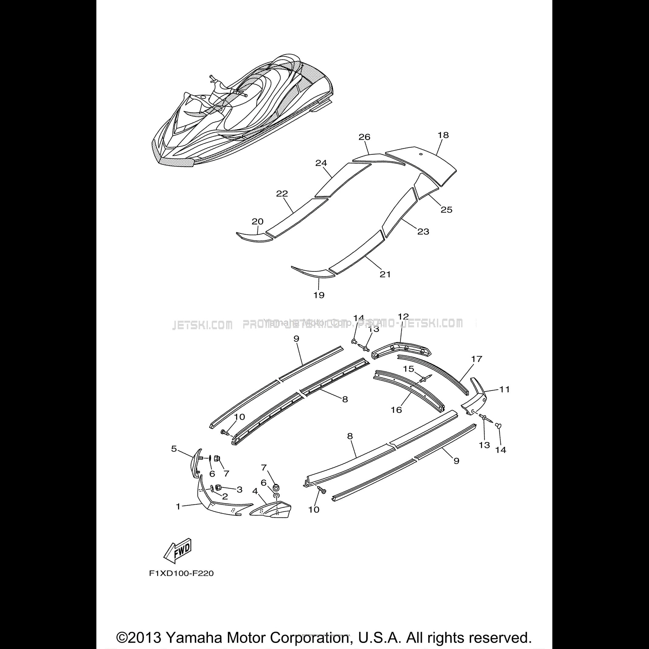Voici le schéma présentant le GUNWALE MAT pour un Yamaha WaveRunner FX HO - FX1100F - 2007.
