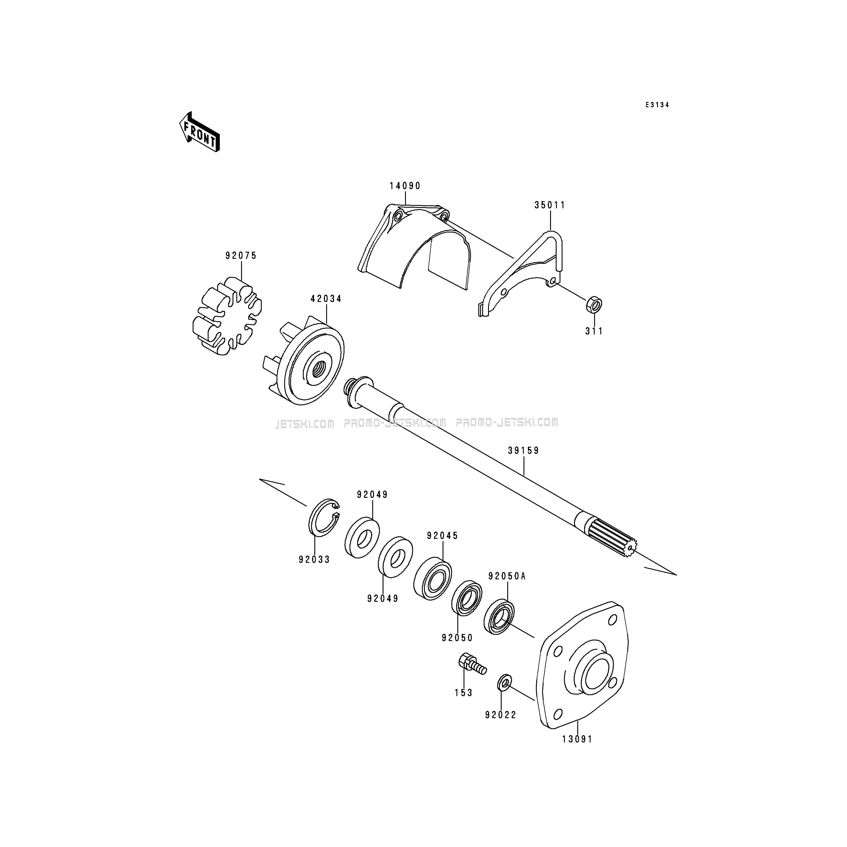 Voici le schéma présentant le Drive Shaft pour un Kawasaki 900 STX.
